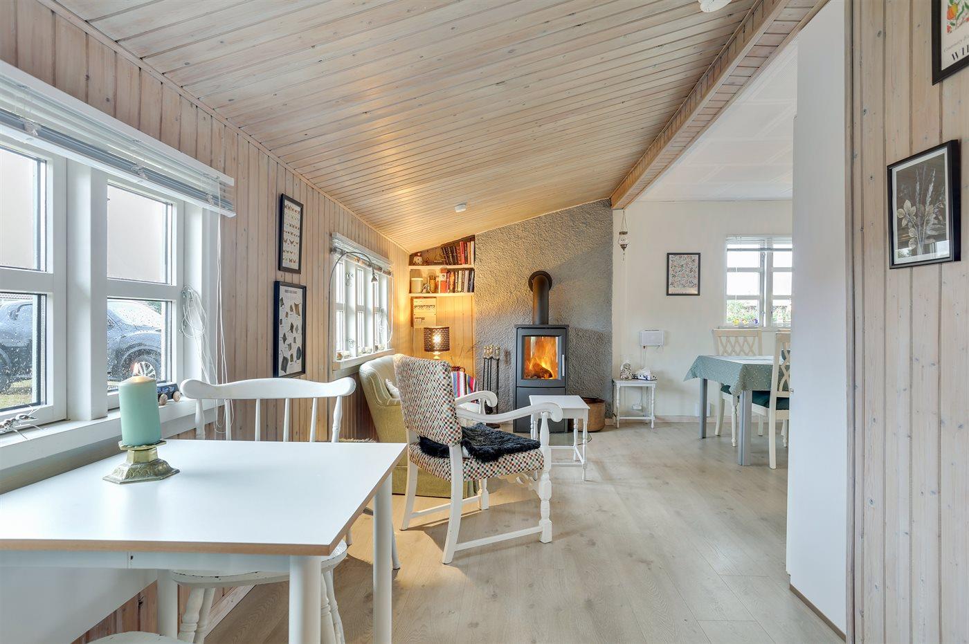 Gemütliches Retro-Ferienhaus nahe kinderfreundlichem Strand in Dänemark mit Kamin und Terrasse.
