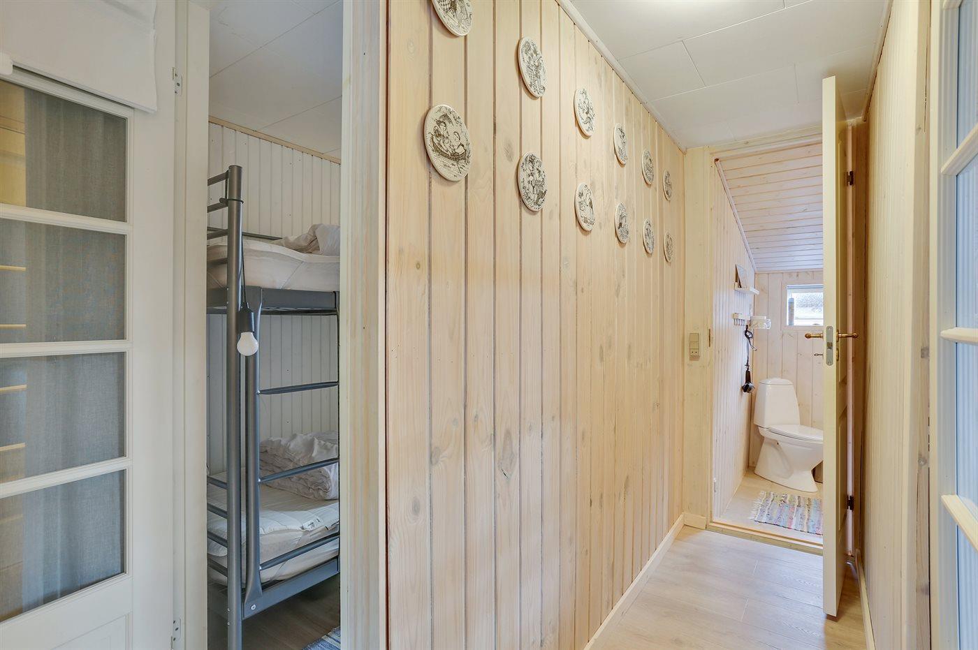Die Schlafplätze verteilen sich auf 3 Schlafräume. 4 Schlafplätze in Doppelbetten. 2 Schlafplätze in einem Etagenbett.