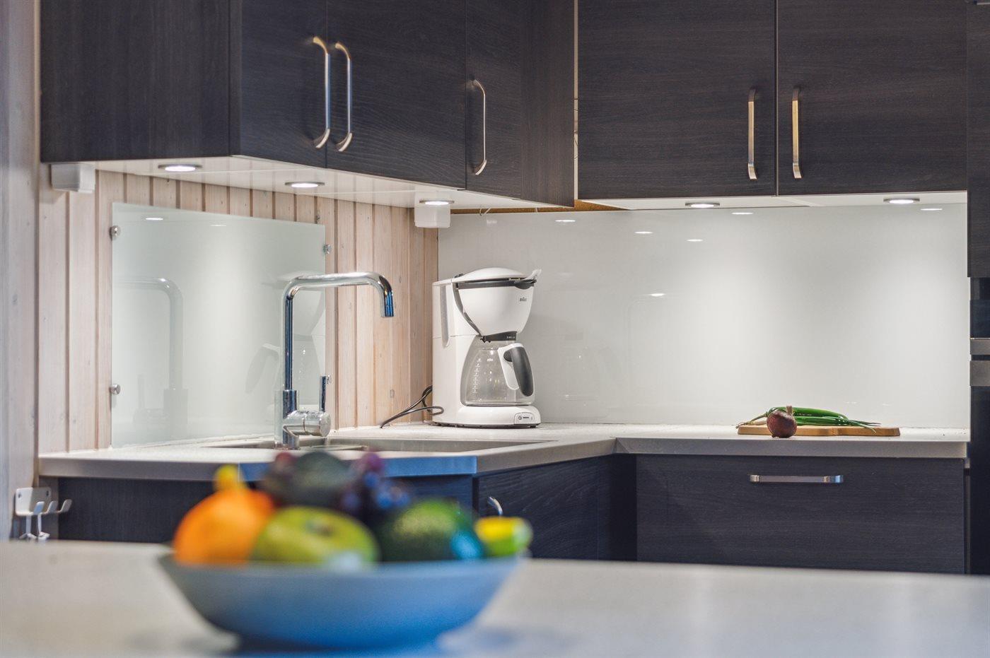 Die Küche ist mit 2 Kühlschränke ausgestattet . Außerdem gibt es 4 Induktions-Kochzonen, Umluftofen, Mikrowelle sowie Geschirrspüler.