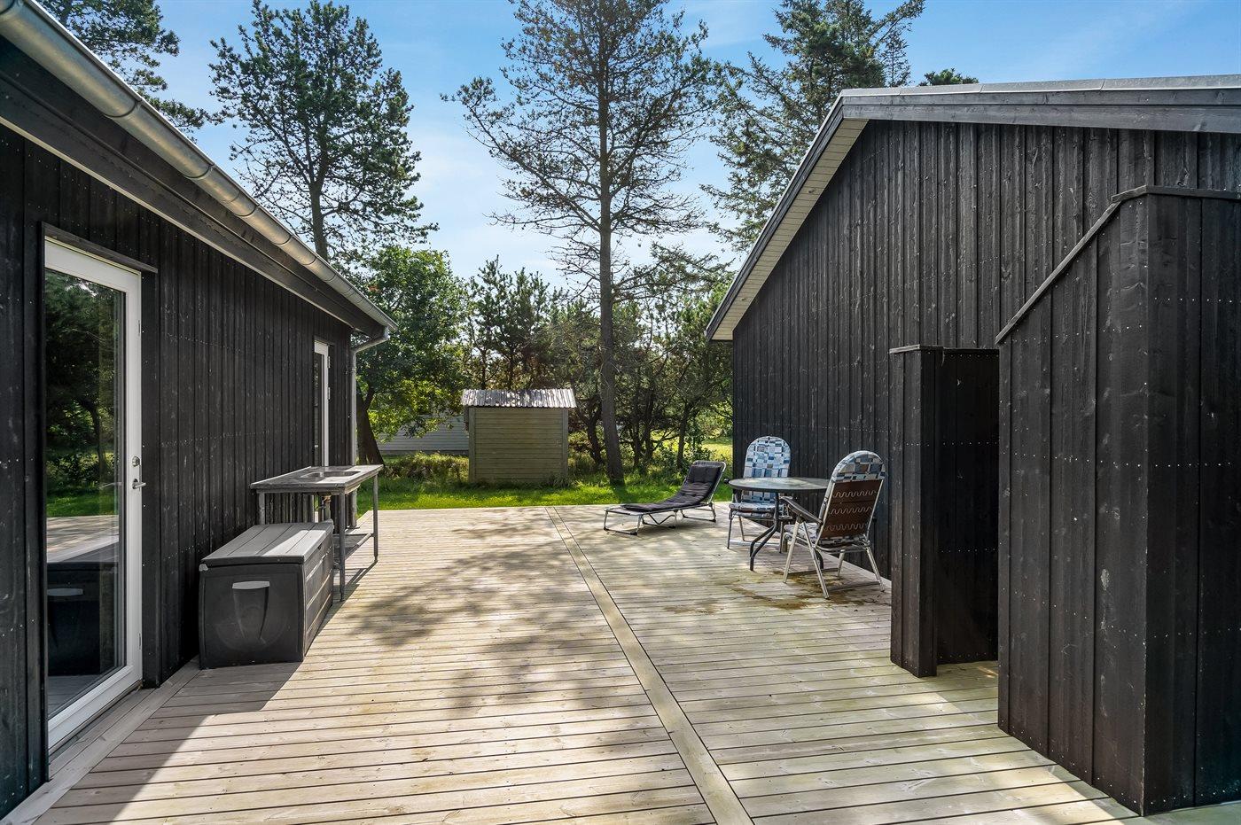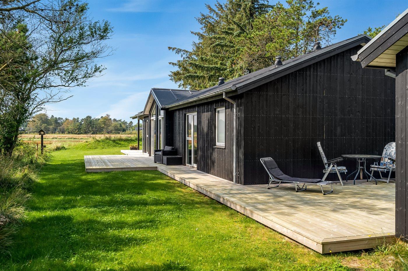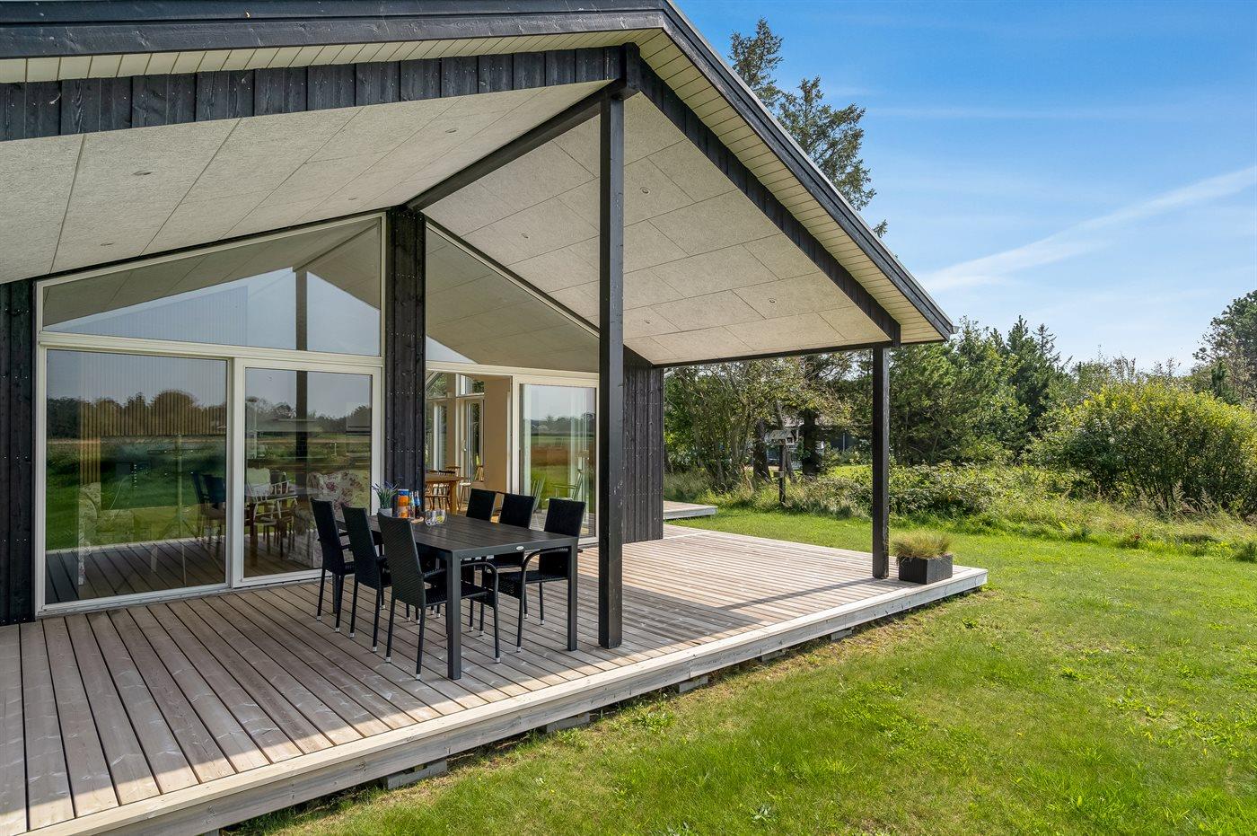 Die Ferienunterkunft liegt auf einem 1211 m² großen Gartengrundstück. Die Entfernung zum Meer beträgt 150 m. Die nächste Einkaufsmöglichkeit liegt 5400 m entfernt. In einem Abstand von 10700 m gibt es einen Golfplatz. Es steht ein offenes Terrassenareal zur Verfügung. Außerdem gibt es überdachte Terrasse. Außendusche. Es steht ein Grill zur Verfügung. Außenspüle. Es ist ein Ladestecker für Elektroautos installiert. Parkplatz auf dem Grundstück.