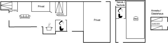 Die Schlafplätze verteilen sich auf 3 Schlafräume. 4 Schlafplätze in Doppelbetten. 2 Schlafplätze in Einzelbetten. 2 von diesen Schlafplätzen befinden sich im Gästehaus.