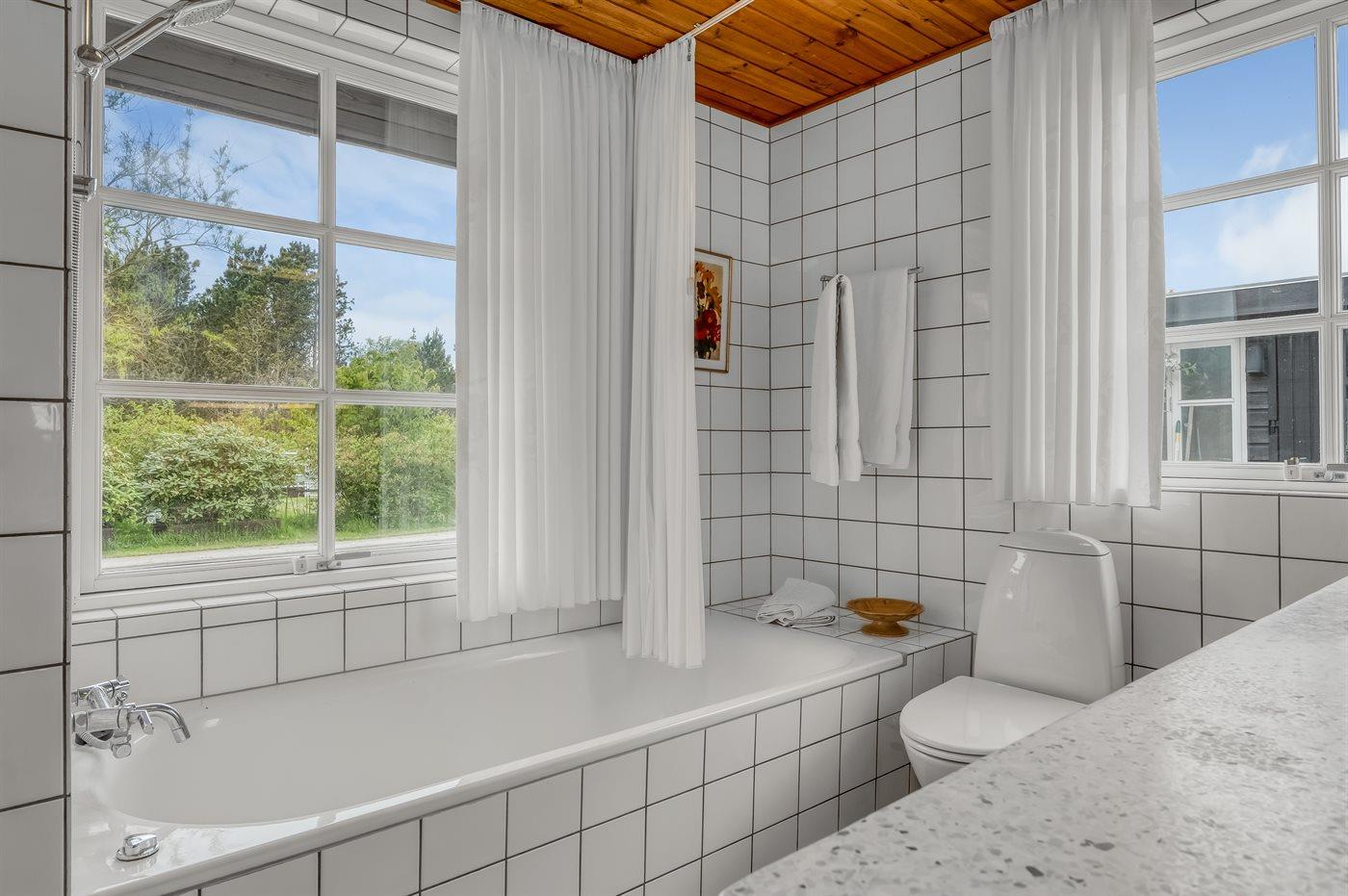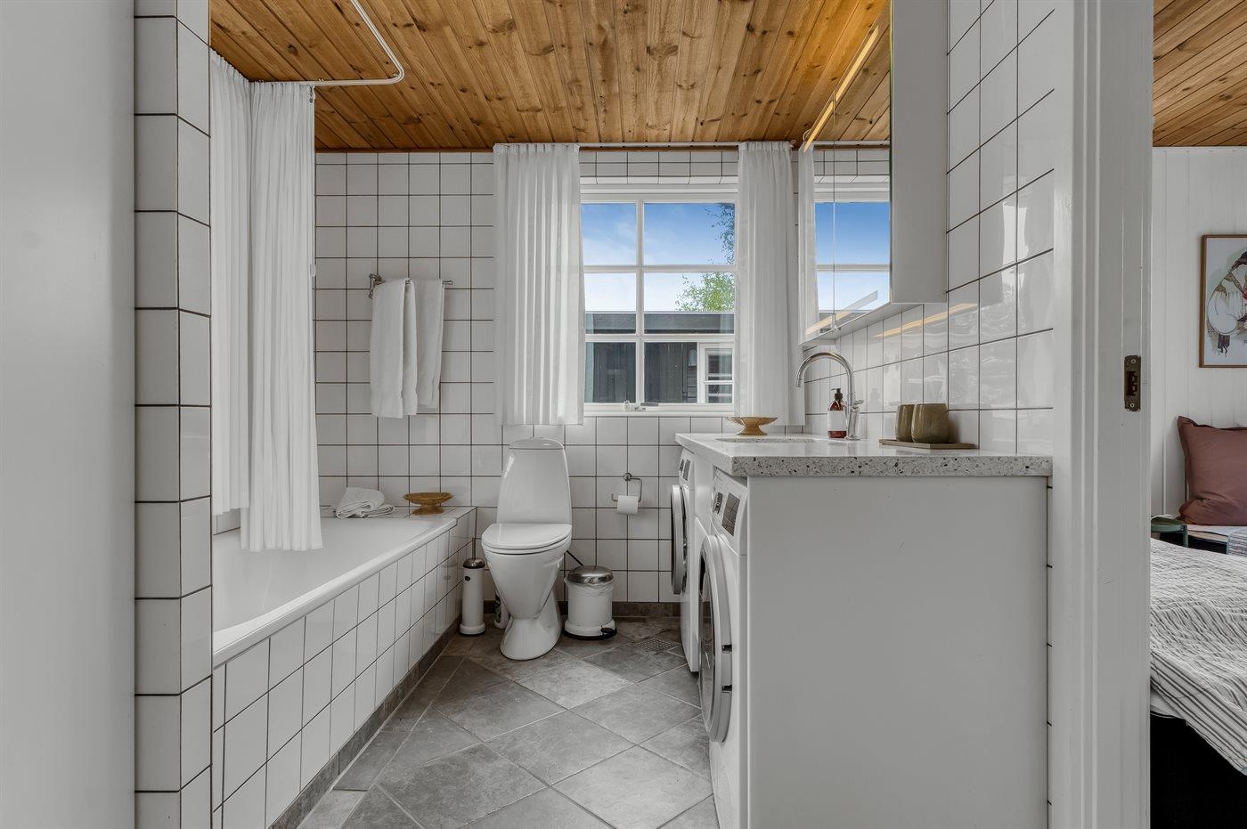 Es gibt 2 Badezimmer mit Fußbodenheizung; 1 mit Duschnische und 1 mit Badewanne.