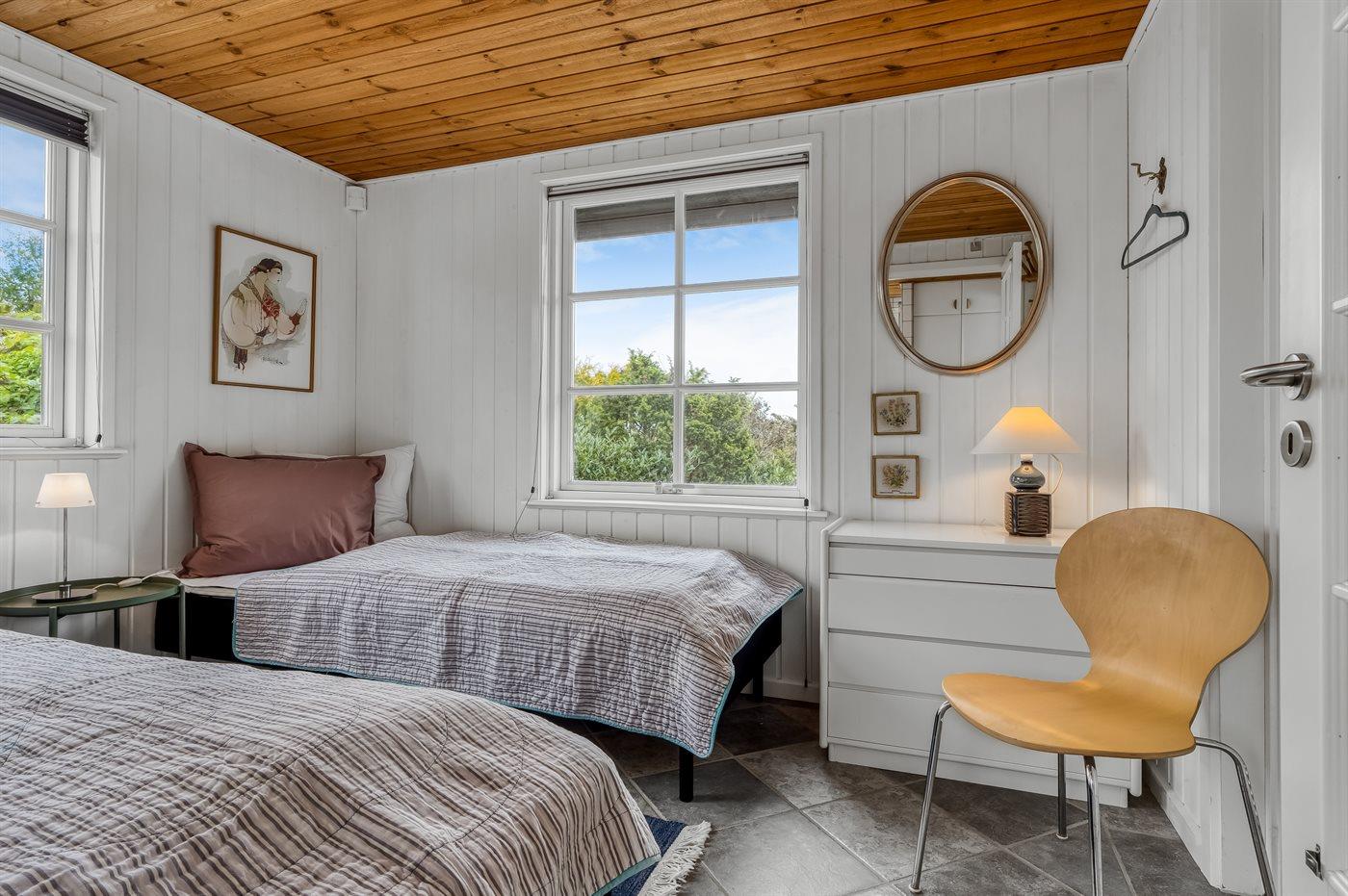 Obergeschoss: 1 Zimmer mit Doppelbett und 1 Zimmer mit 2 Einzelbetten.