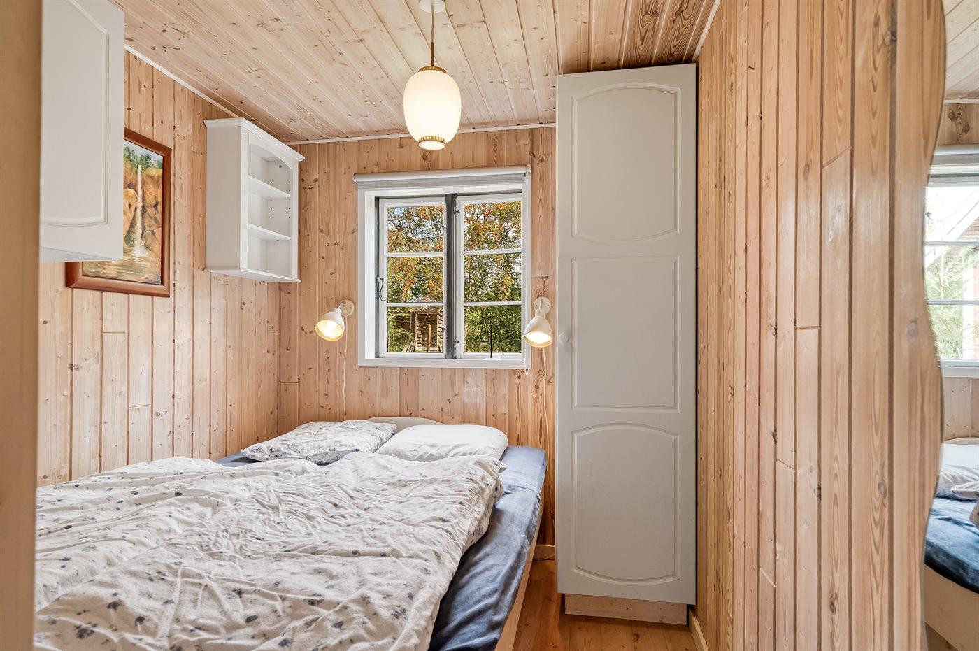 Es gibt einen Schlafraum. 2 Schlafplätze in einem Doppelbett.