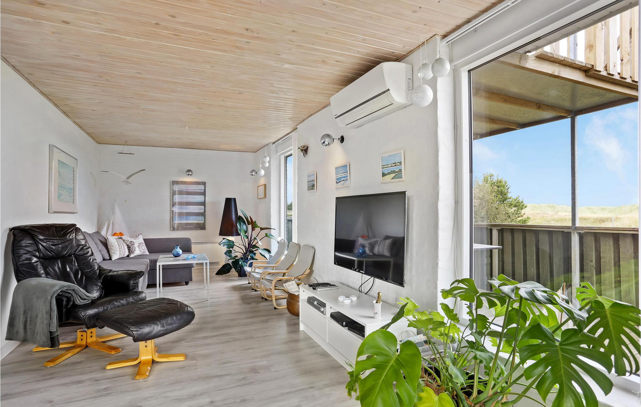 In der äußeren Dünenreihe liegt dieses schöne, renovierte Ferienhaus auf einem hügeligen Dünengrund. Vom Wohnraum haben Sie einen schönen Blick auf die Dünen. Schöne, von Wind geschützte Terrassen. Im Haus gibt es einen Aktivitätsraum mit Unterhaltung für jedes Alter. Zwei Wärmepumpen im Haus sorgen dafür, dass der Aktivitätsraum und das Haus unweltbewusst beheizt werden. Das Grundstück ist hügelig und Sie blicken von hier auf den Kattegat. Von diesem Ferienhaus ist es nicht weit zu Aktivitäten wie Golf, Reiten und Tennis. Nur 12 km entfernt liegt Sæby, eine beschauliche, alte Stadt. Wenn Sie sich entscheiden, Ihren Urlaub in diesem Ferienhaus zu verbringen, sollten Sie auch die Wanderdüne Råbjerg Mile besuchen.