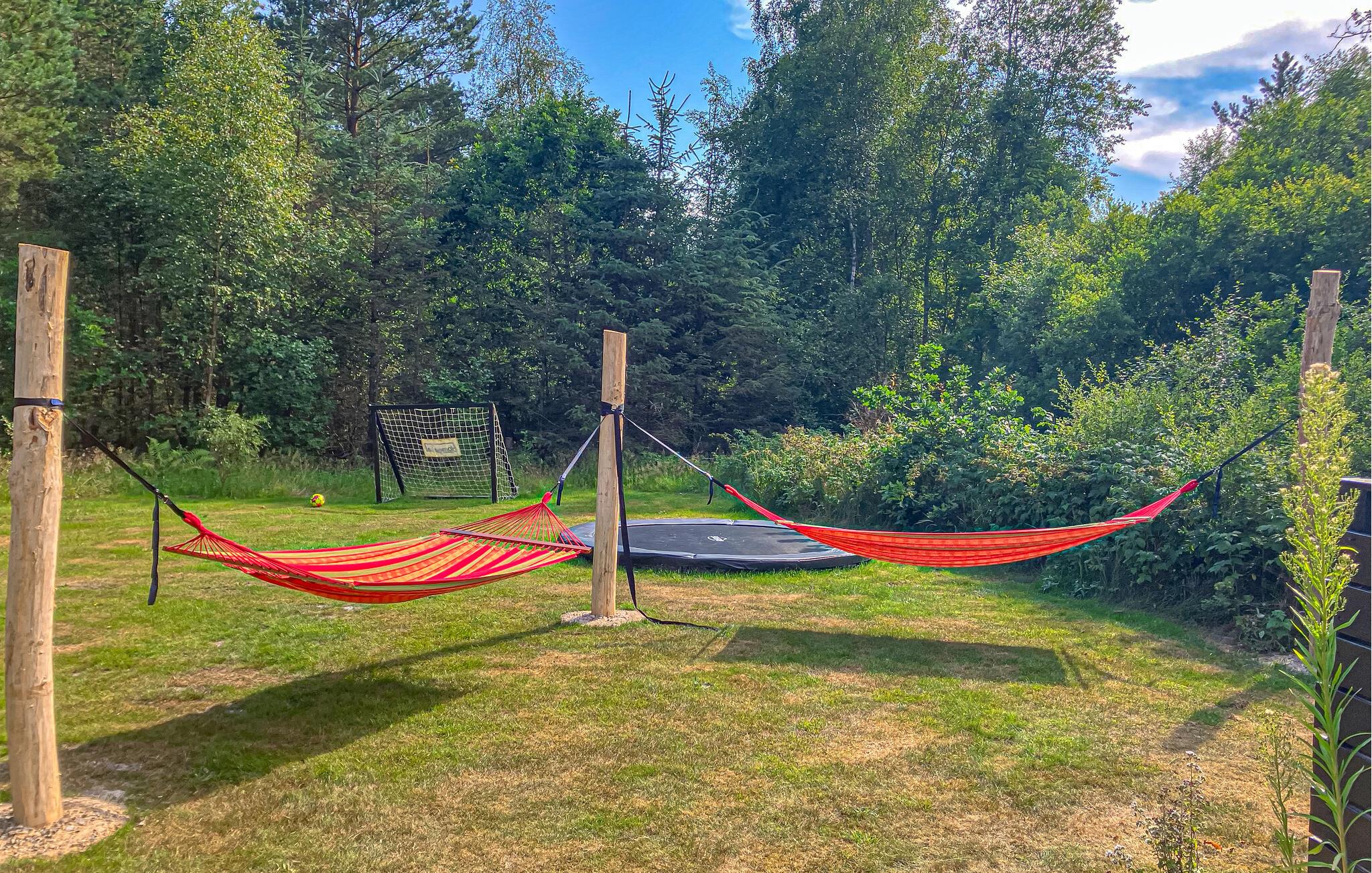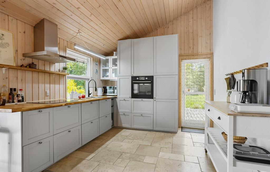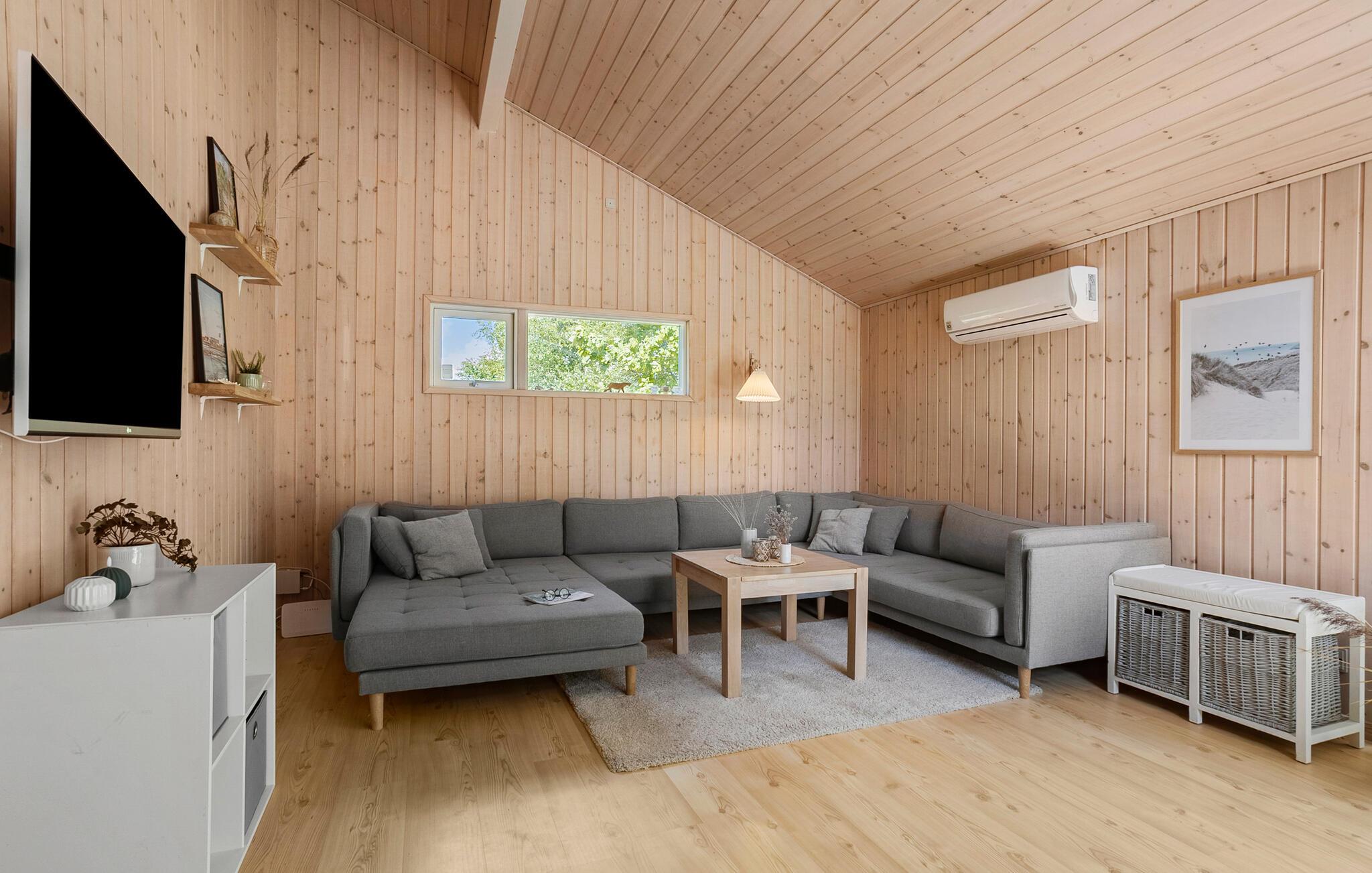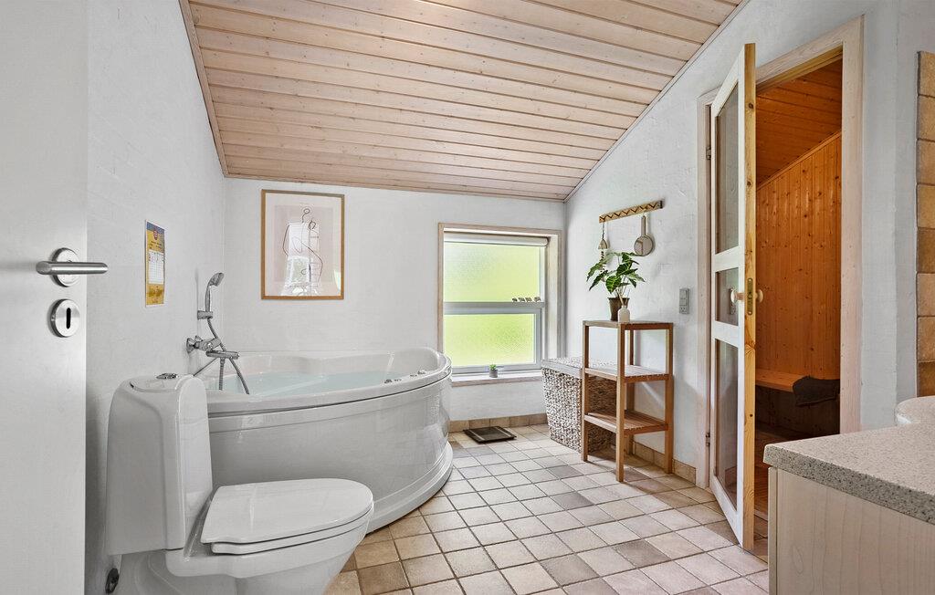 Genießen Sie die Ruhe in Ihrem behaglichen Ferienhaus, das sich nur unweit von einem feinen Sandstrand entfernt befindet. Eingebettet in eine friedliche Umgebung mit schönen Bäumen, lädt es zum Entschleunigen ein. Die klassische Einrichtung schafft eine warme Atmosphäre, in der Sie sich sofort wohlfühlen können. Bereiten Sie Ihre Mahlzeiten in der schön eingerichteten Küche zu und verbringen Sie gesellige Abende im Wohnbereich, ob mit einem Film, einem Buch oder am wärmenden Kaminofen. Sauna und Whirlpool sorgen für zusätzliche Erholung zum Tagesausklang.