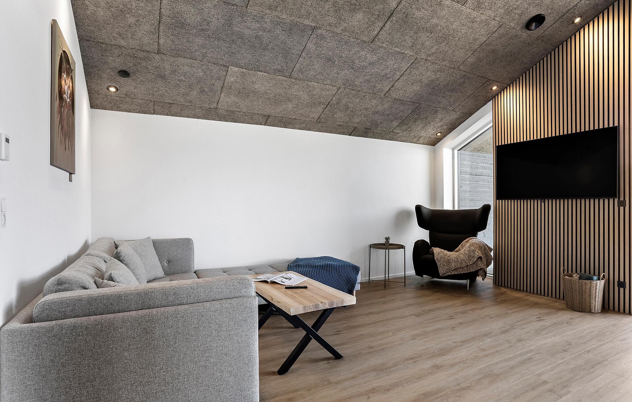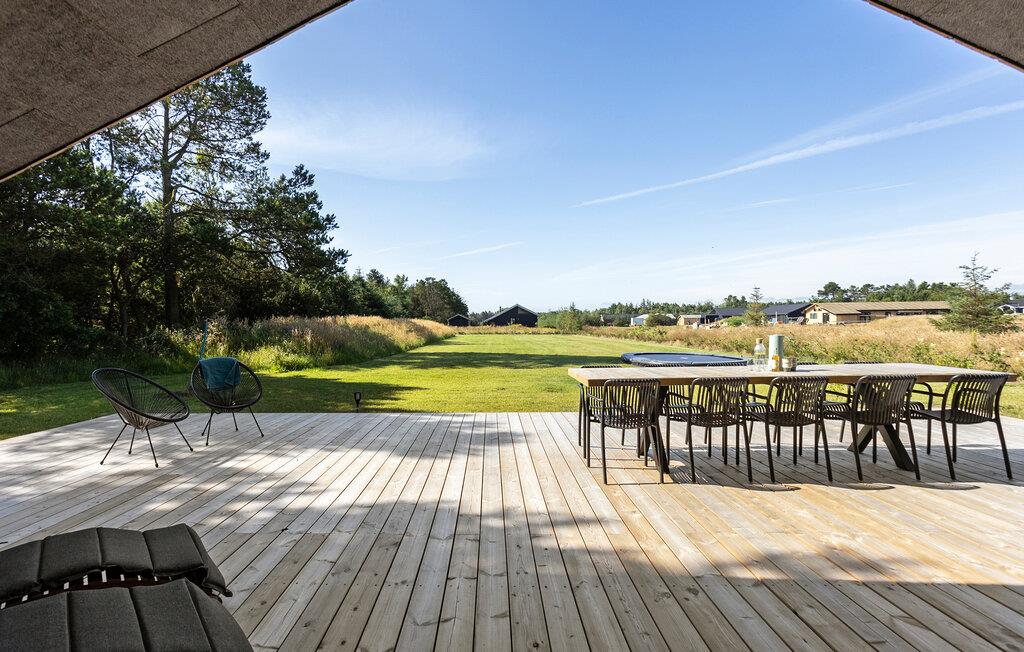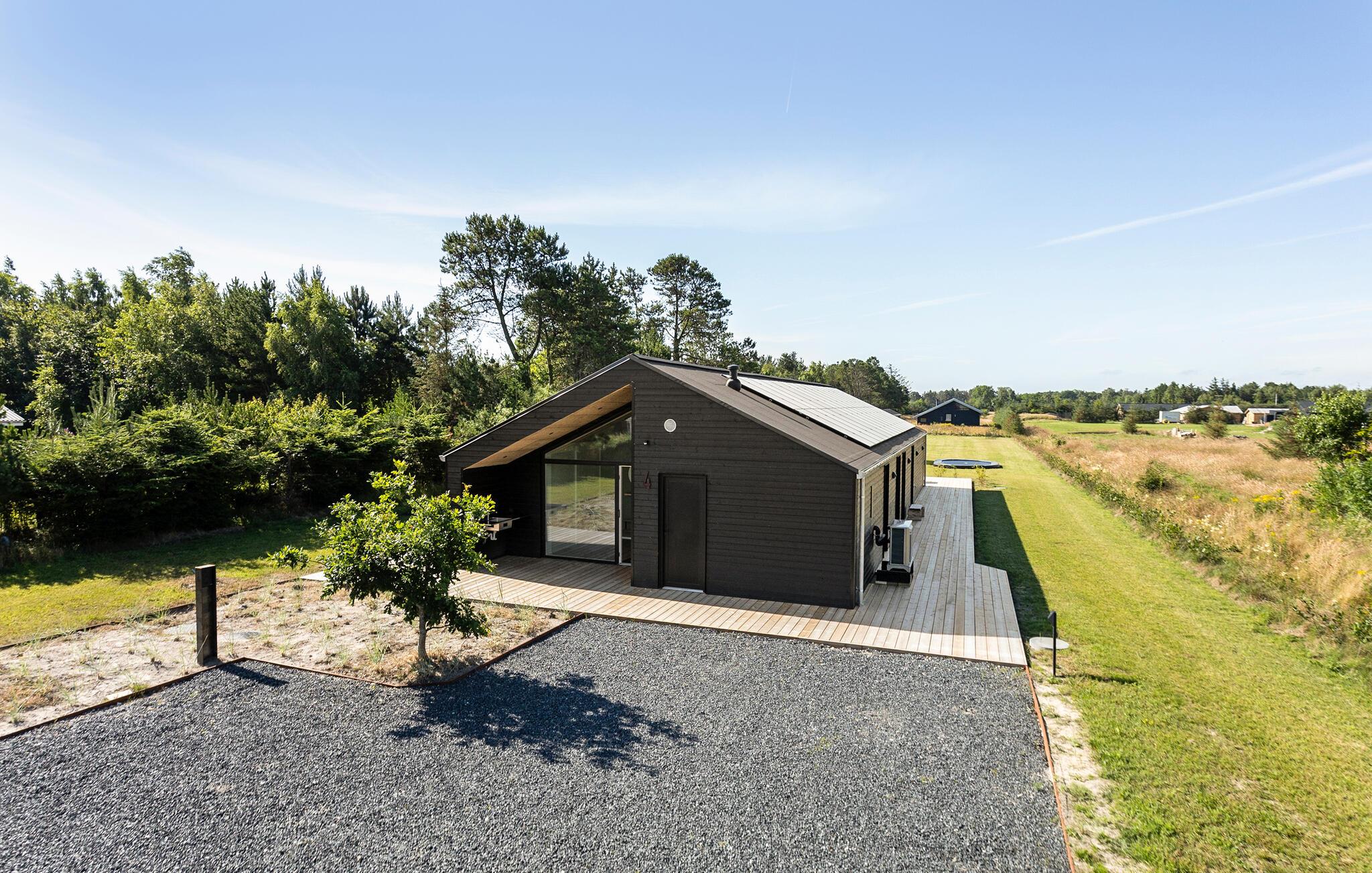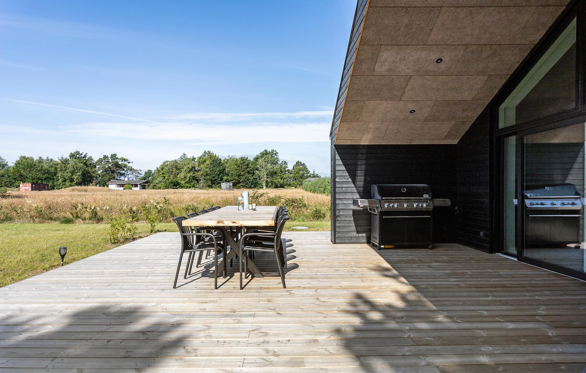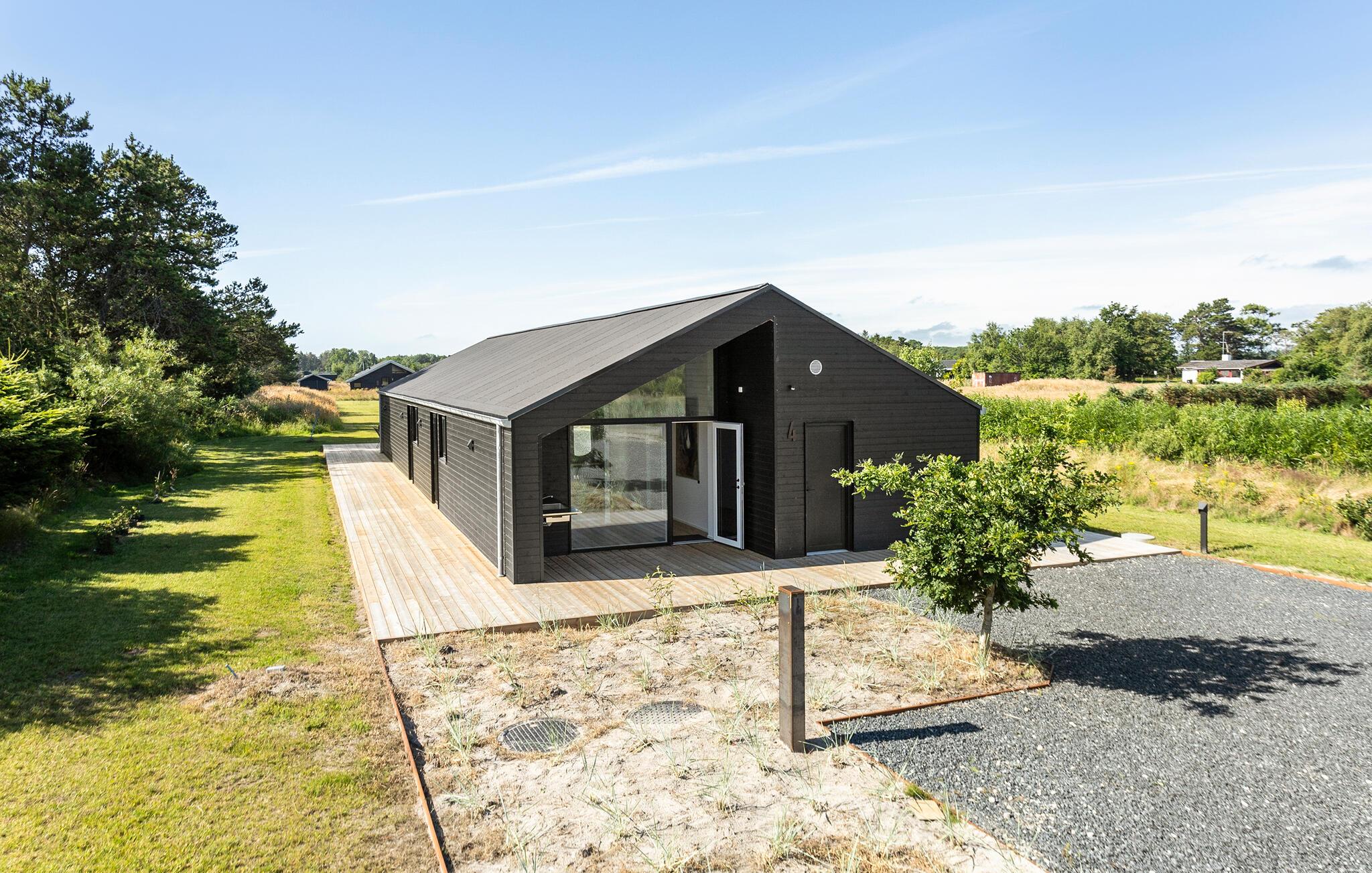 Modernes, energiesparendes Ferienhaus in Meeresnähe mit großer Terrasse und Garten für entspannte Stunden in Sæby, Dänemark.