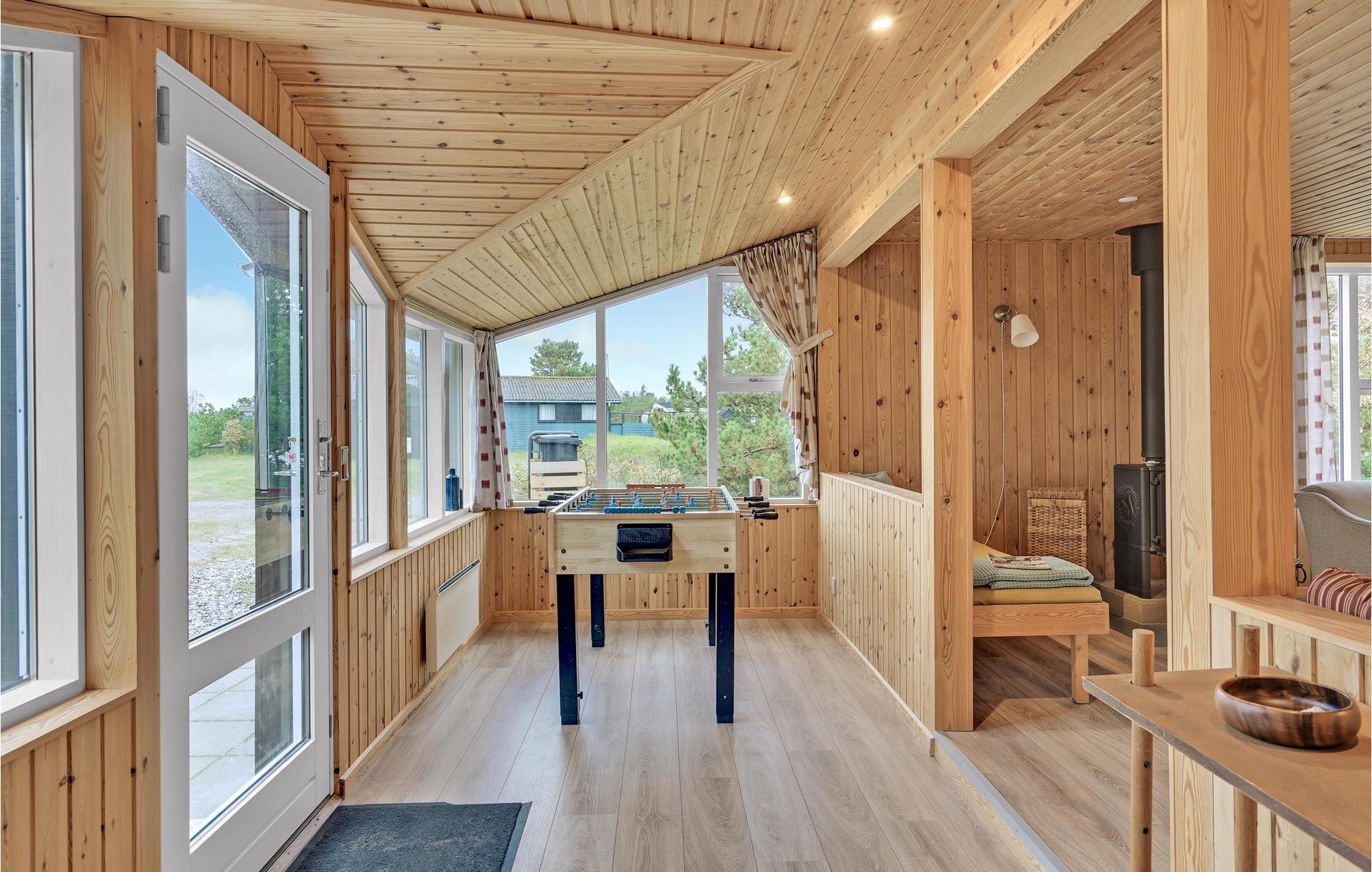 Auf einem schönen Strandgrundstück, nahe dem herrlichen Badestrand von Lyngså, liegt dieses gemütliche und einladende Ferienhaus, das sowohl innen als auch außen hervorragend gepflegt ist. Das Haus präsentiert sich hell und freundlich mit warmen Holzelementen, einem offenen Grundriss und einem Kaminofen, der an kühleren Tagen für wohlige Wärme und ein angenehmes Knistern sorgt, ideal, um ein gutes Buch zu genießen.