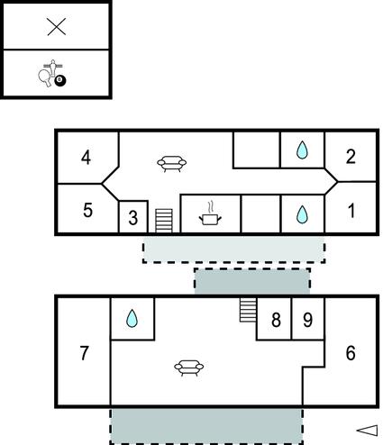 Schlafzimmer (nr. 6) - 2 Schlafmöglichkeiten. (Einzelbett(en)). 4 Schlafmöglichkeiten. (Doppelbett(en)).