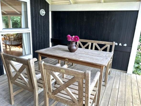 Wenn der Abend hereinbricht, ist die teilweise überdachte Terrasse hinter dem Haus der perfekte Ort zum Grillen, Entspannen und Genießen der ruhigen Sommerabende. Hier haben Sie reichlich Gelegenheit, den Tag im Schutz vor Wind und Wetter zu verlängern, während die Ruhe über die Gegend hereinbricht.
