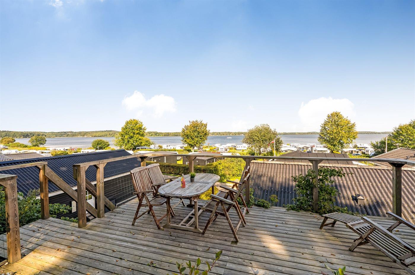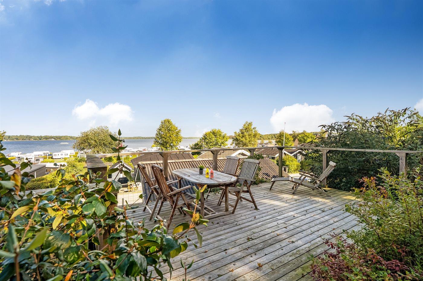 Ruhiges Ferienhaus mit Panoramaterrasse und Fjordblick am Mariager Fjord in Dänemark.