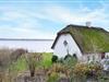 Gemütliches Ferienhaus mit Reetdach direkt am Mariager Fjord, mit Panoramablick und eigenem Sandstrand.