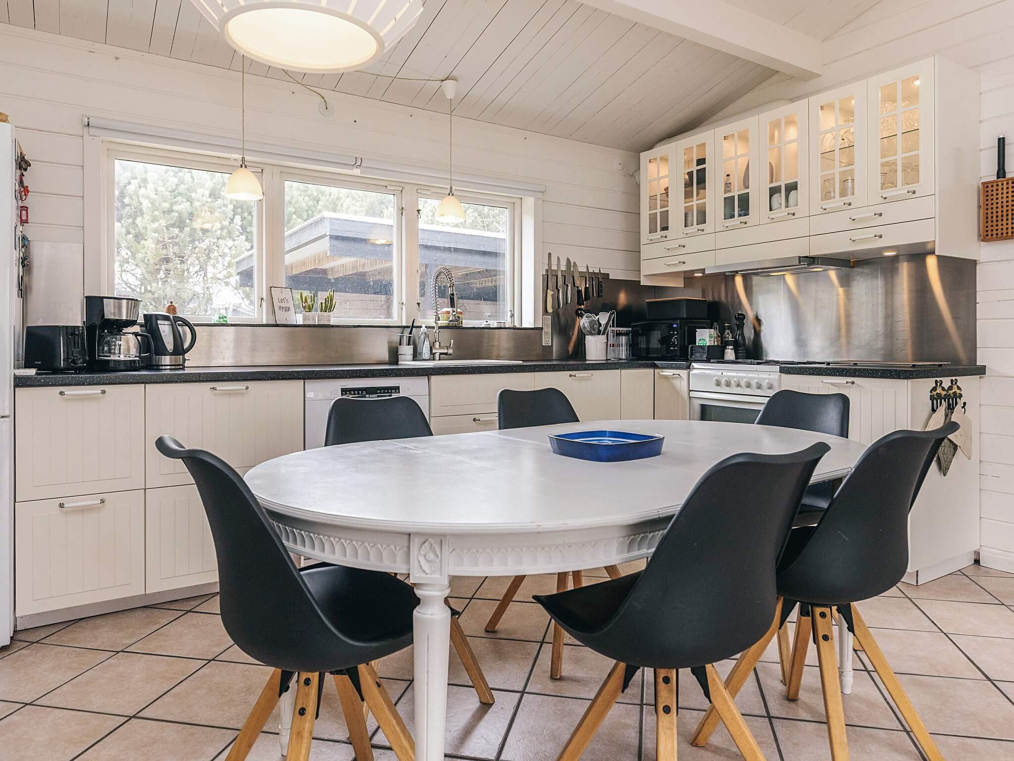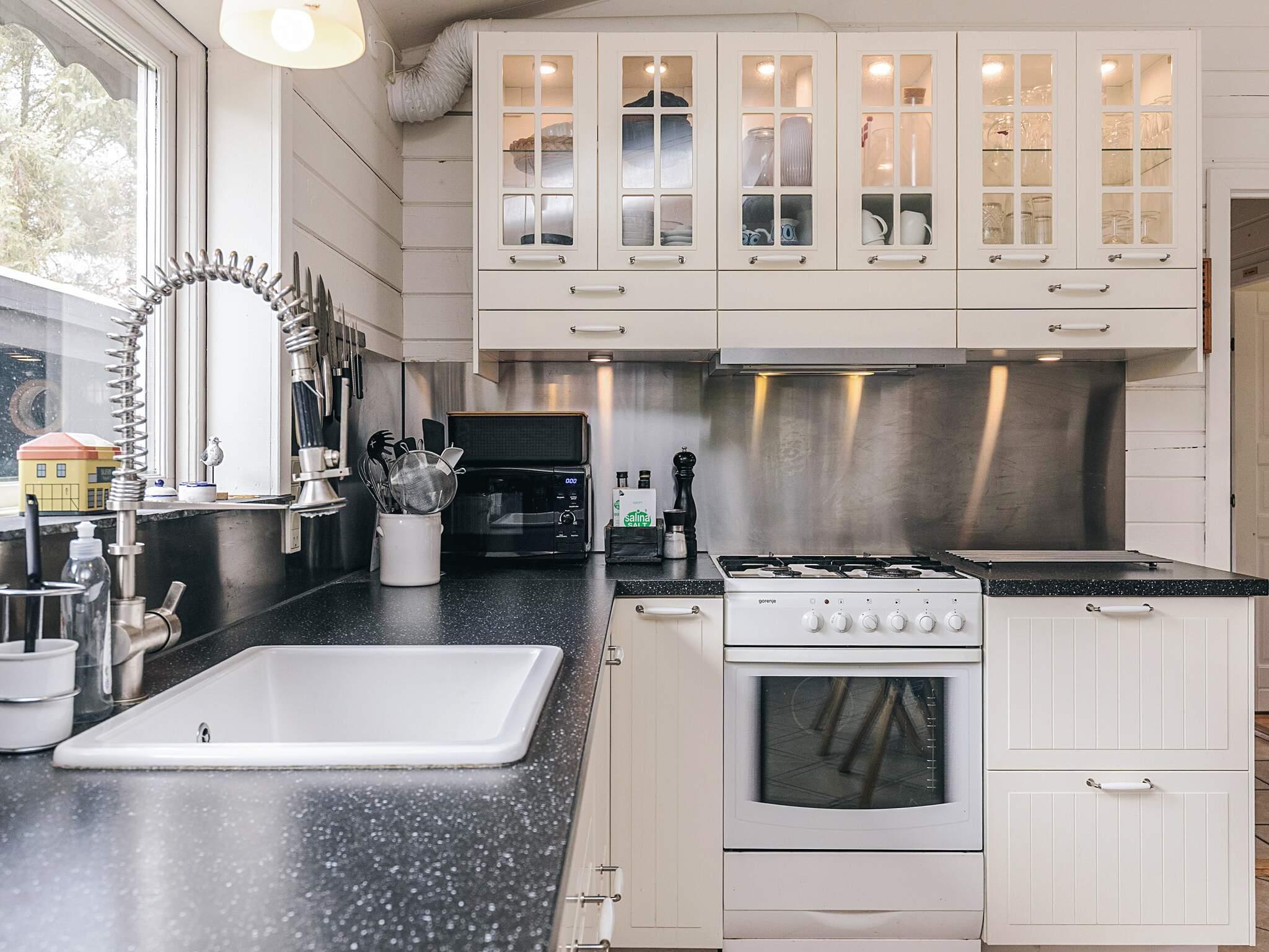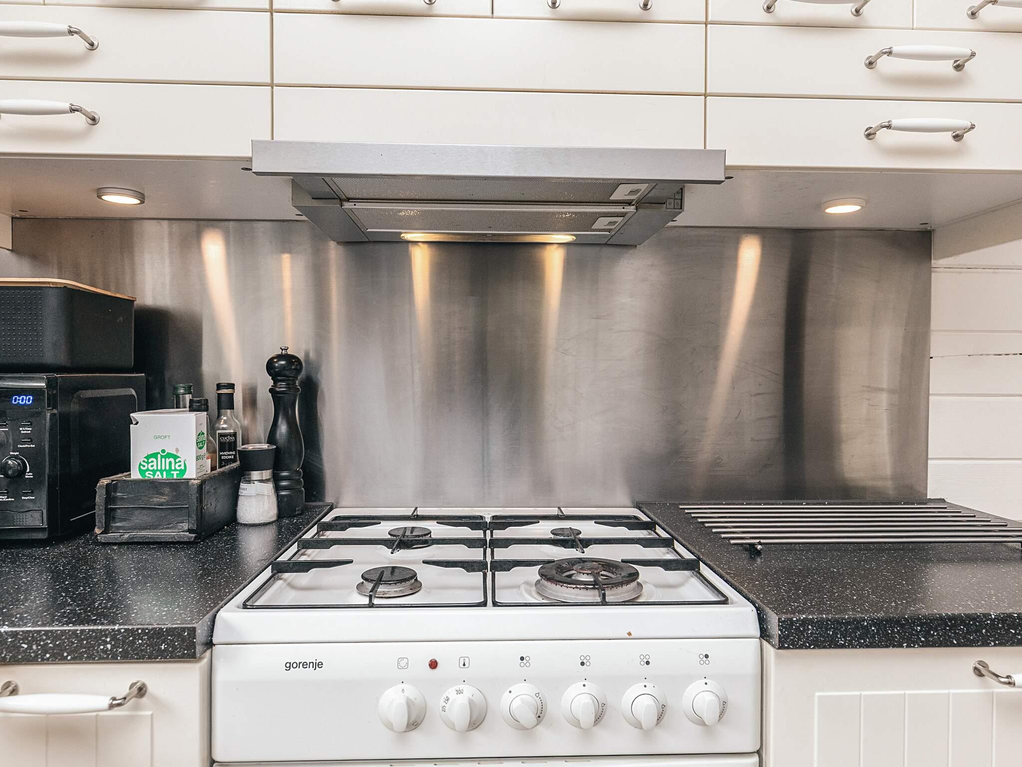 Im Haus befinden sich drei Schlafzimmer; eines mit Doppelbett, eines mit zwei Einzelbetten und ein 3. mit einem Einzelbett. Die offene Küche ist gut ausgestattet und verfügt unter anderem über einen Gasherd, eine Kaffeemaschine, eine Mikrowelle, einen Geschirrspüler und einen Gefrierschrank. Das Wohnzimmer verfügt über eine Wärmepumpe und einen Holzofen, einen Fernseher mit Chromecast und WLAN. Das Badezimmer ist mit Toilette, Waschbecken und Dusche ausgestattet. Vom Wohnzimmer aus haben Sie Zugang zur Terrasse und zum Garten.