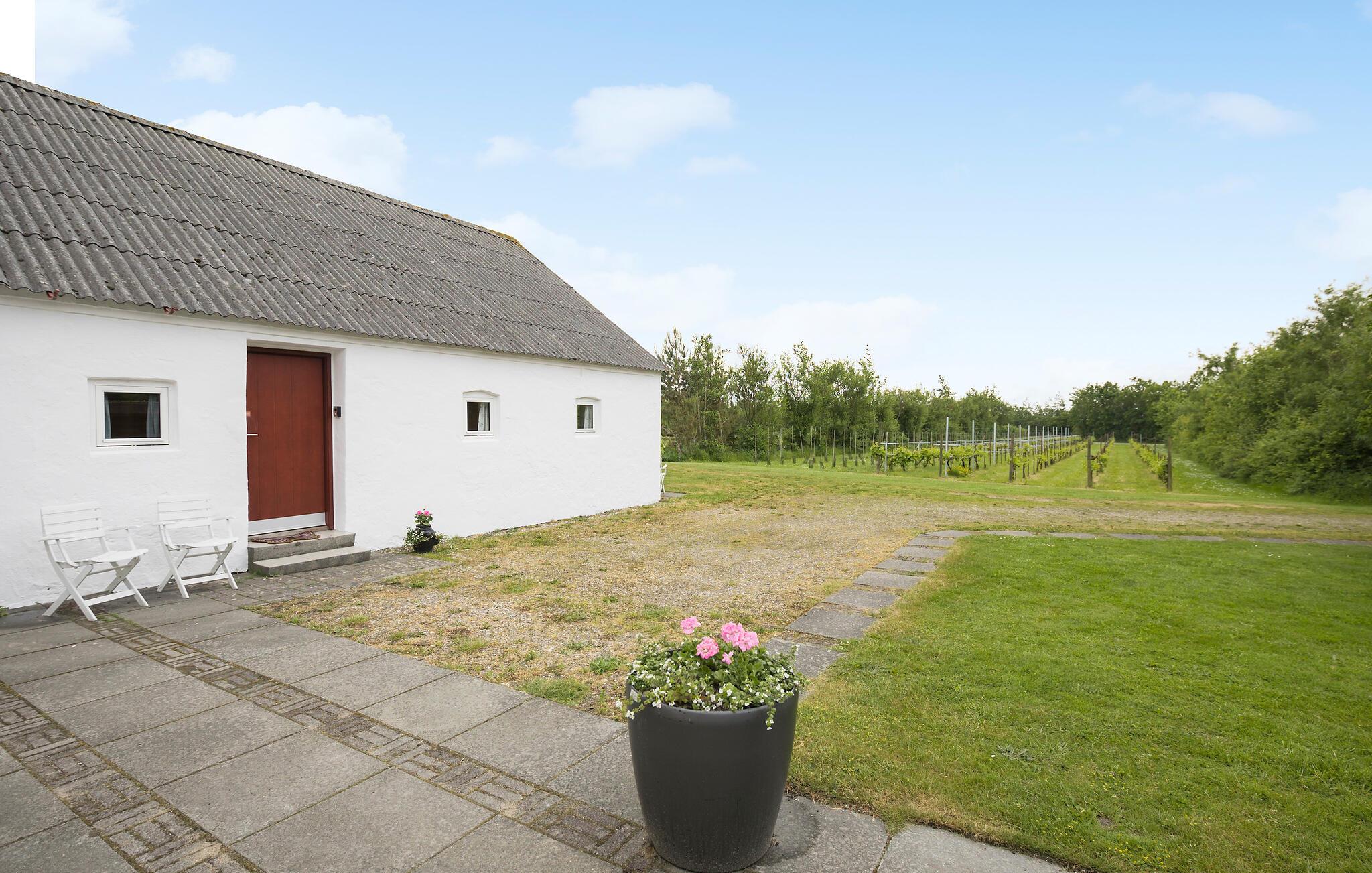 Gemütliche Ferienwohnung auf Weingut nahe Limfjord mit Garten, Terrasse und Grillmöglichkeiten für entspannte Urlaubstage.