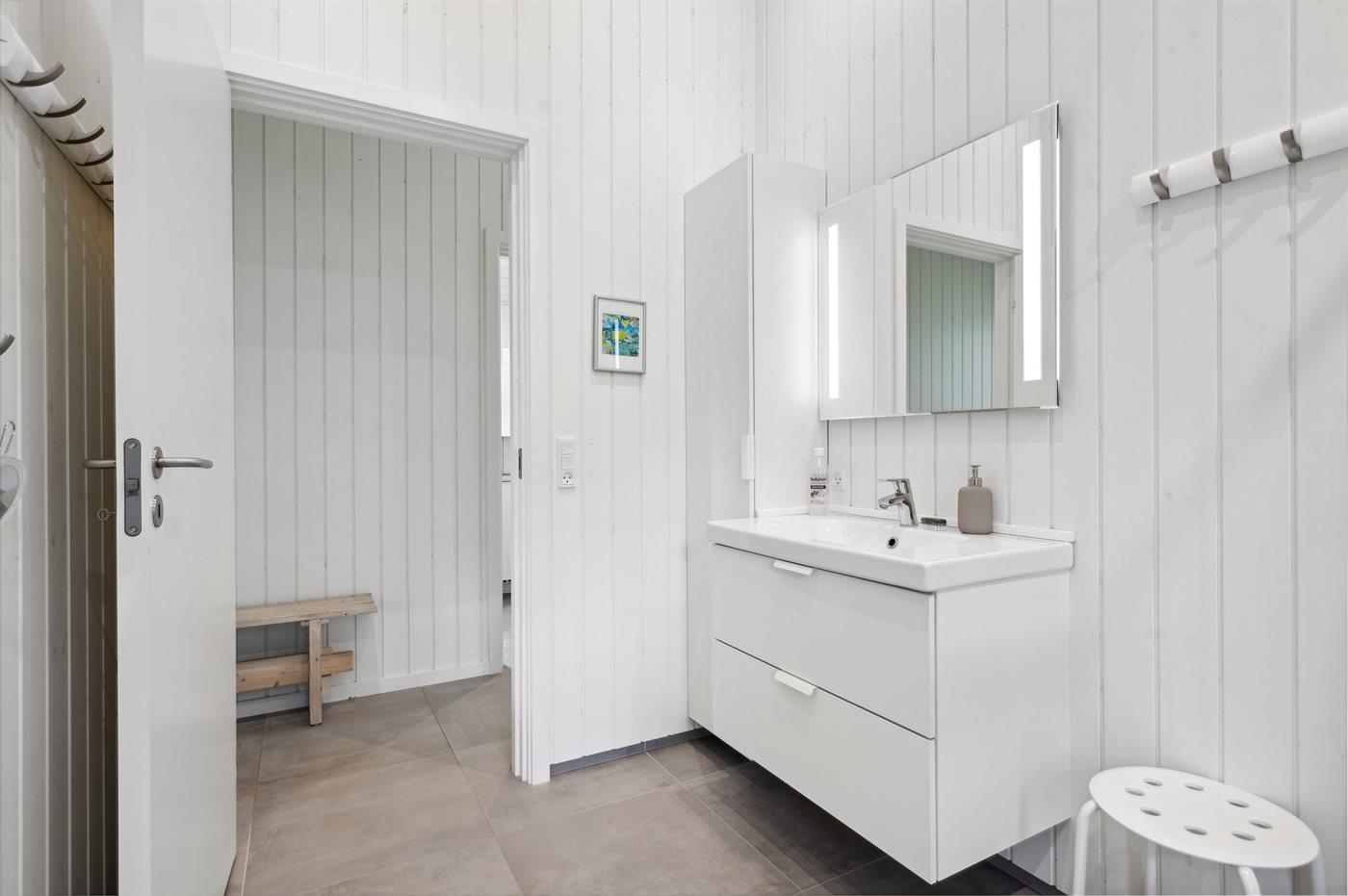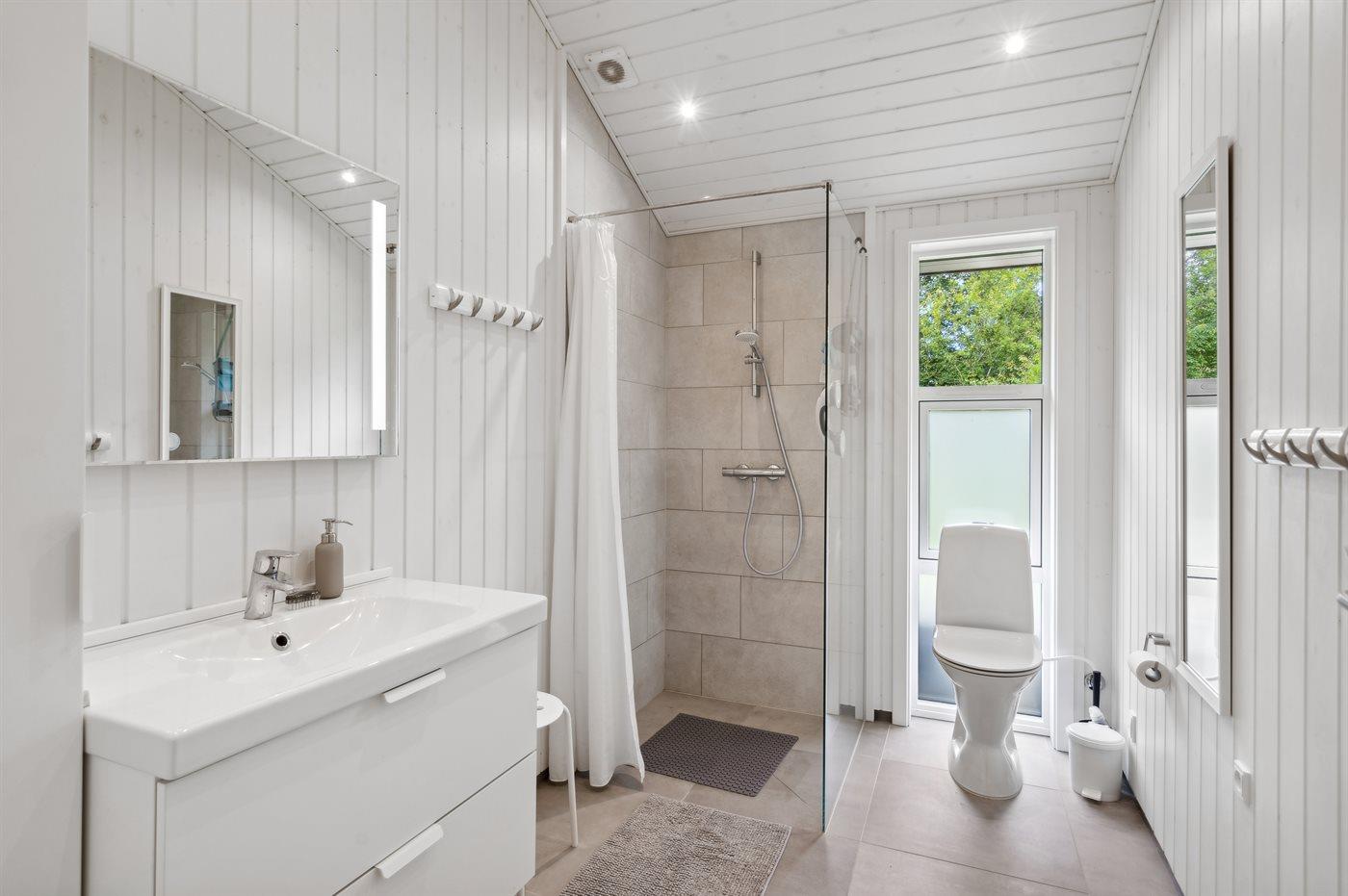 Im Inneren gibt es überall hohe Decken, die Luft und ein gutes Raumgefühl schaffen. Das Wohn- und Esszimmer ist offen mit der Küche verbunden und bildet den natürlichen Treffpunkt für Gemütlichkeit und Zusammensein. Von hier aus gelangt man auf die Terrasse. Es gibt 4 Schlafzimmer mit jeweils 2 Schlafplätzen. Es gibt 2 Badezimmer mit Dusche und Fußbodenheizung. Eine Waschmaschine und ein Trockner sind vorhanden. Das Haus wird energieeffizient mit einer Luft-Luft-Wärmepumpe beheizt. Außerdem gibt es eine Ladestation für Elektroautos.
