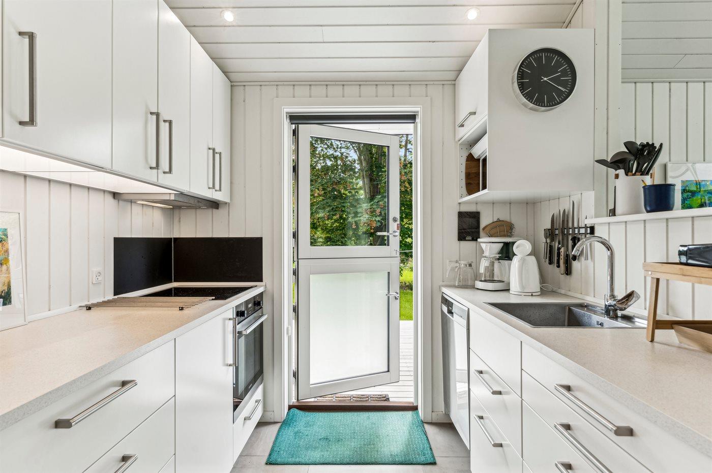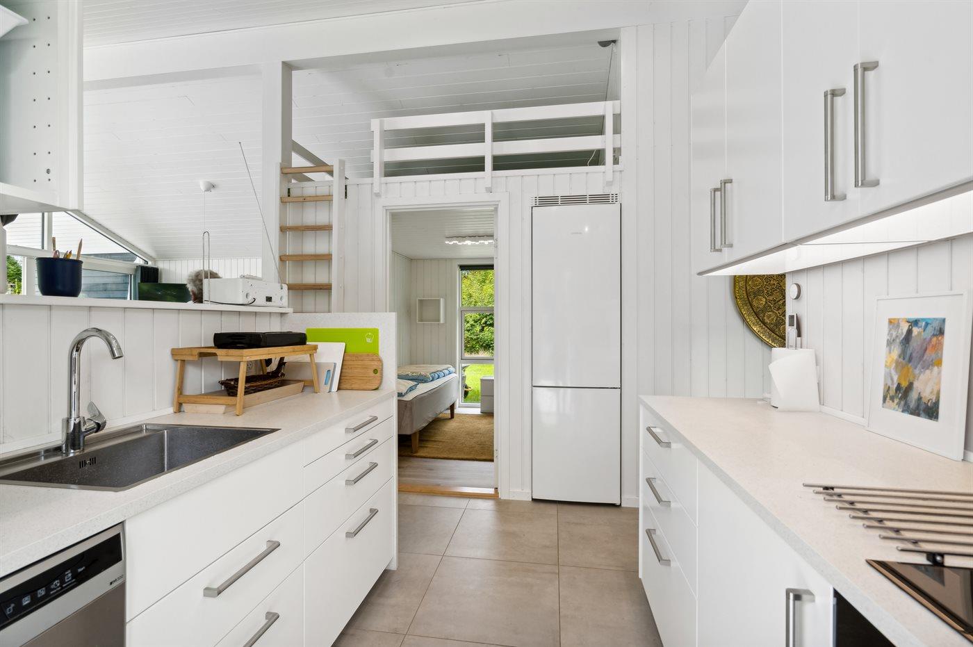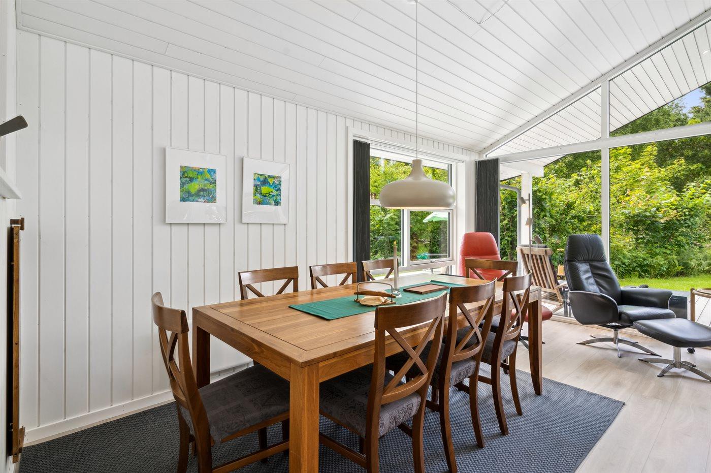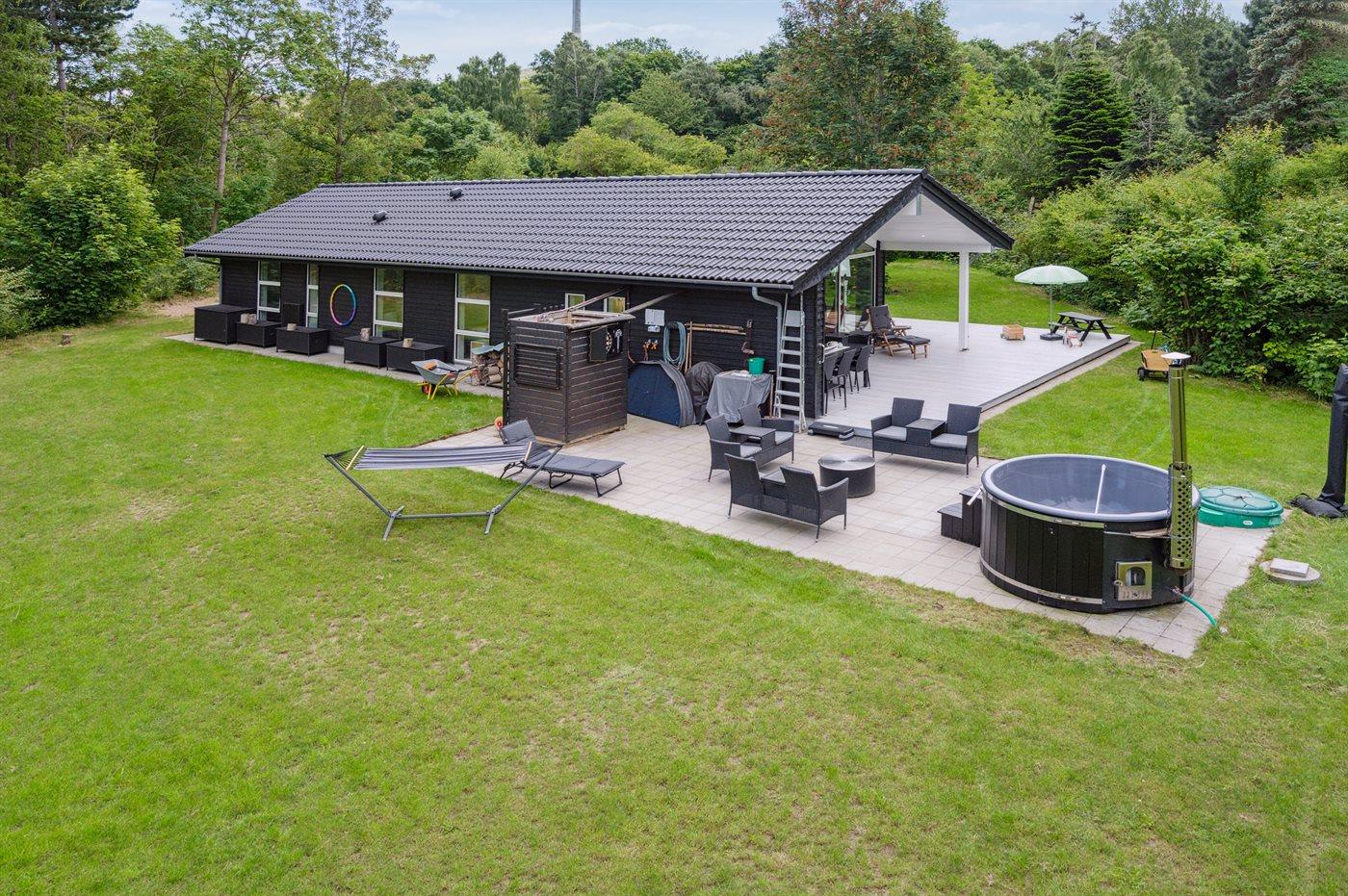 Das Haus befindet sich in einem ruhigen Ferienhausgebiet, umgeben von schöner Natur und nur 375 Meter vom Strand entfernt, und nur 1400 Meter vom sehr beliebten Ordrup Strand entfernt, wo es einen Badesteg gibt, der weit ins Wasser hineinragt. Nur 1400 Meter vom Haus entfernt befinden sich ein Eisladen, Restaurants und Einkaufsmöglichkeiten (saisonal geöffnet). Im nahegelegenen Kårup Skov gibt es für die Kinder einen großen Spielplatz mit unter anderem Seilbahn, Rutsche, Aussichtsturm und Spielhäusern.