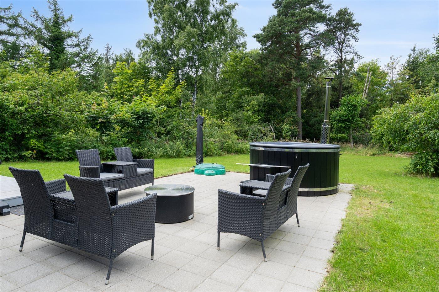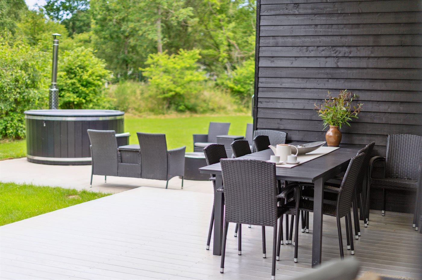 Modernes Ferienhaus in Ordrup, 375 m zum Strand, mit Whirlpool, großem Grundstück und Spielmöglichkeiten für Kinder.