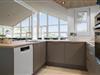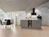 Das Wohnzimmer und die Küche sind die zentralen Räume des Hauses. Die offene Küche ermöglicht es, Mahlzeiten zuzubereiten und gleichzeitig die Erlebnisse des Tages mit den anderen zu teilen, die im Wohnzimmer entspannen. Die Küche ist modern und funktional, mit allen notwendigen Einrichtungen und einem schönen Blick auf die Umgebung. Der Esstisch, der an die Küche anschließt, bietet Platz für gemeinsame Mahlzeiten oder ein spannendes Gesellschaftsspiel. Direkt neben dem Ess- und Wohnbereich führt eine Tür zur Terrasse, sodass Sie Ihre Mahlzeiten auch im Freien genießen können, während Sie die Aussicht auf den Garten und die Natur bewundern.