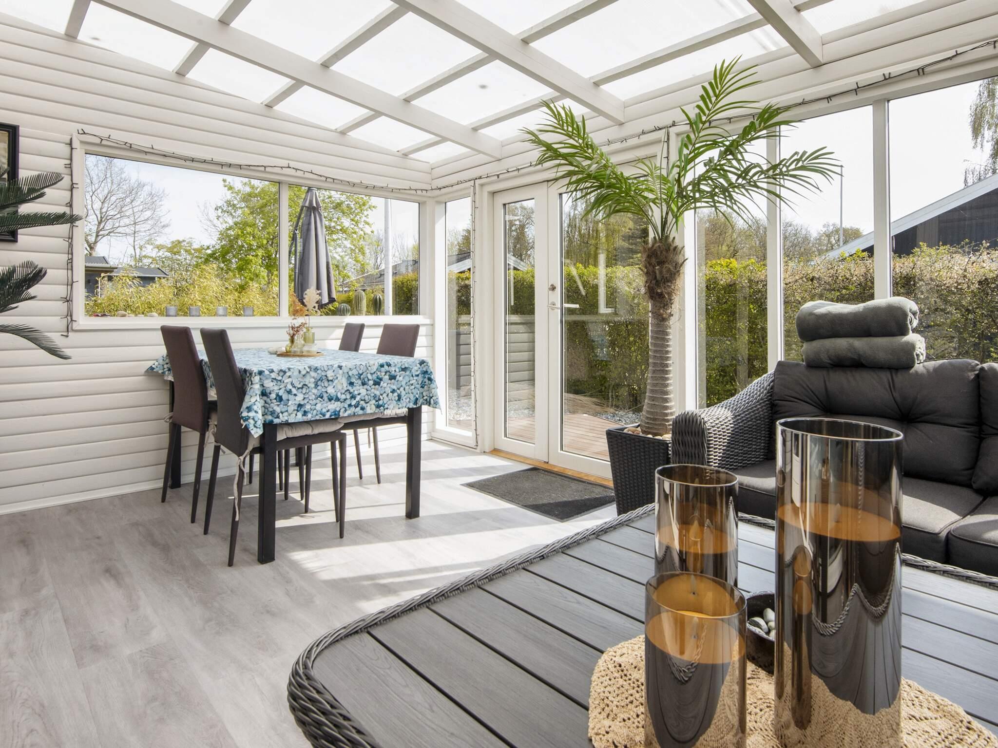 Vom Wohnzimmer aus haben Sie direkten Zugang zu einem schönen Wintergarten, in dem Sie das ganze Jahr über und bei jedem Wetter die Natur genießen können. Es gibt drei schöne Terrassen mit Ost-, Süd- und Westausrichtung. Ein Teil der Westterrasse ist überdacht und mit einem Gasgrill ausgestattet, sodass Sie geschützt vor Sonne und leichtem Sommerregen essen können.