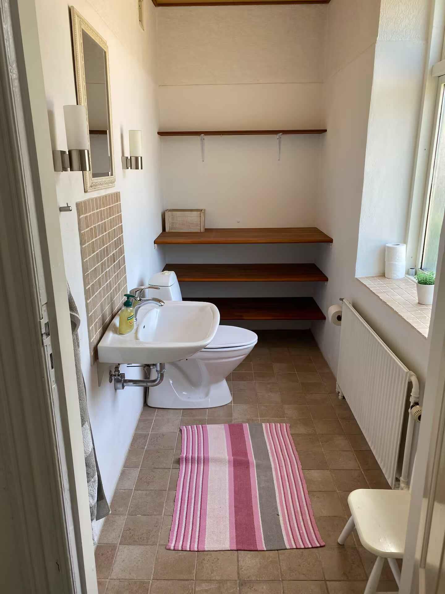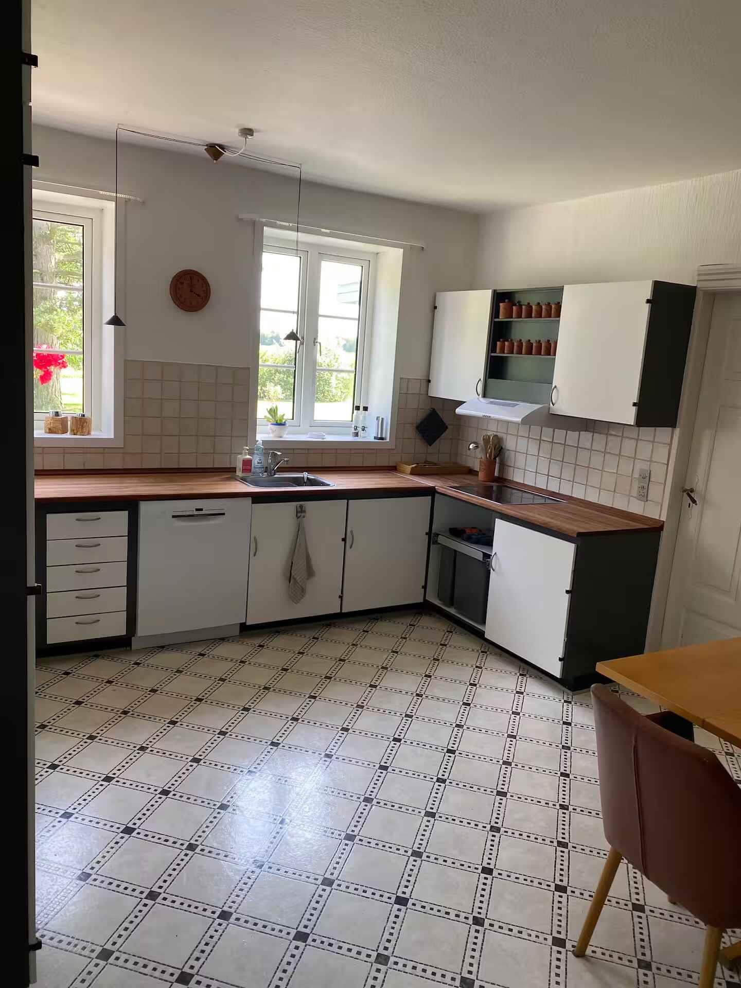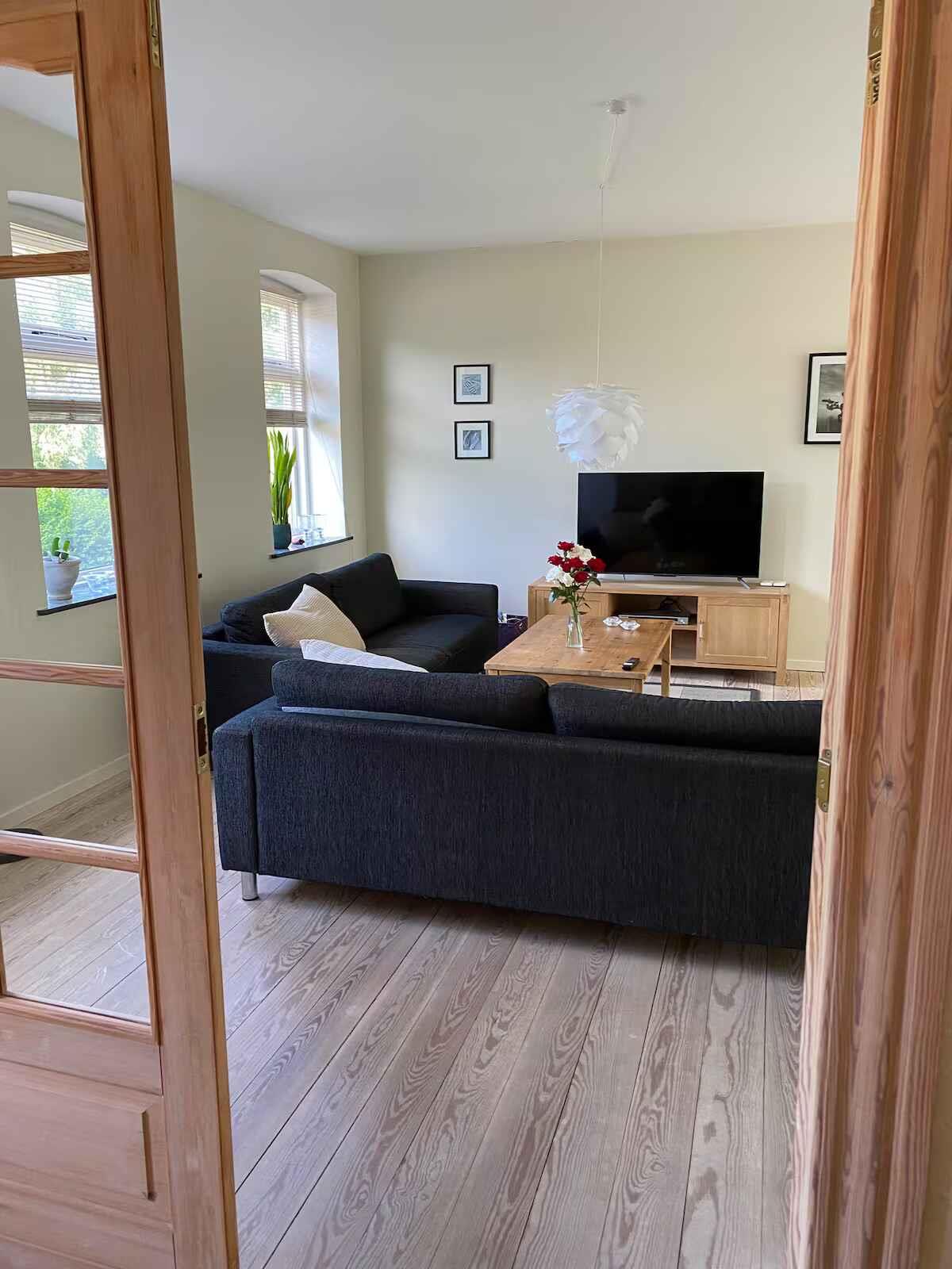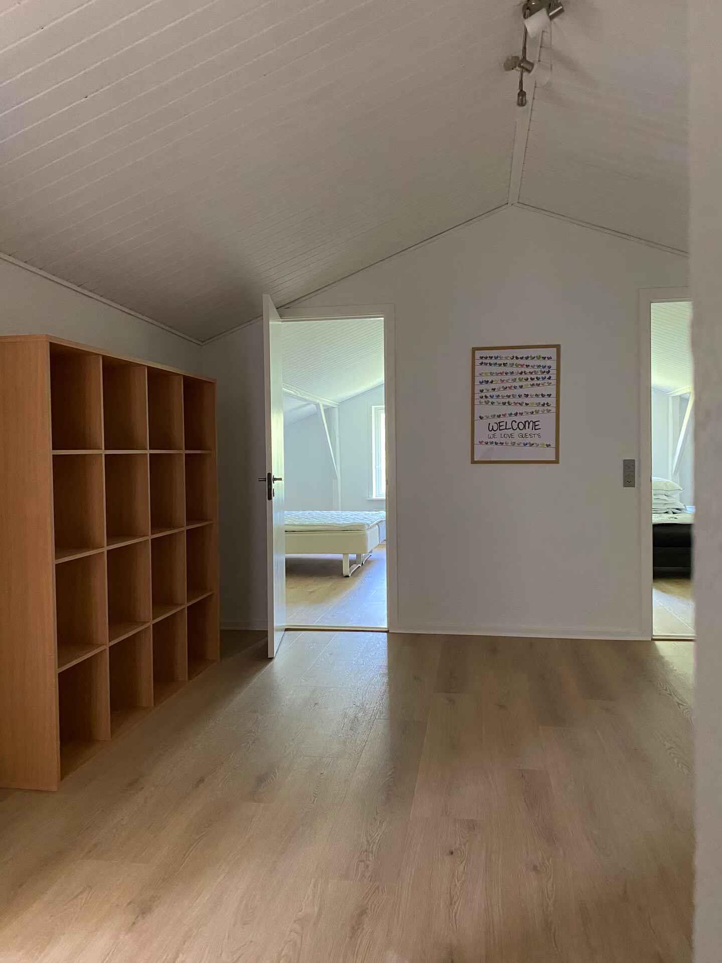 Ein Aufenthalt in diesem großzügigen Landhaus bietet Ruhe, Natur und viel Platz. Bis zu sechs Gäste können hier die friedliche Umgebung mit Blick auf den Frøslev-Wald genießen. Das 250 m² große Haus verbindet Funktionalität mit gemütlichen Wohnräumen und einladenden Außenbereichen. Die große Diele führt in einen praktischen Hauswirtschaftsraum mit direktem Zugang zur teilweise überdachten Terrasse. In der Küche gibt es Sitzplätze für fünf Personen, und im angrenzenden Esszimmer können bis zu acht Gäste gemeinsam speisen. Das Wohnzimmer ist hell, freundlich und mit zwei großen Sofas ausgestattet. Im Erdgeschoss befinden sich ein Badezimmer mit Badewanne und ein separates Gäste-WC. Im Obergeschoss liegen drei Schlafzimmer – zwei mit Doppelbetten (180 x 200 cm) und eines mit 160 x 200 cm – sowie ein großzügiger Flur. Vom Garten aus hat man freien Blick auf den Frøslev-Wald, perfekt für Spaziergänge oder Radtouren. Die vielen Wege machen die Umgebung ideal für Naturliebhaber und Familien, die Ruhe und frische Luft schätzen. Die Grenzregion bietet zudem Kultur und Geschichte: Flensburg, Museen und historische Stätten sind schnell erreicht – eine ideale Mischung aus Erholung, Natur und spannenden Ausflügen.