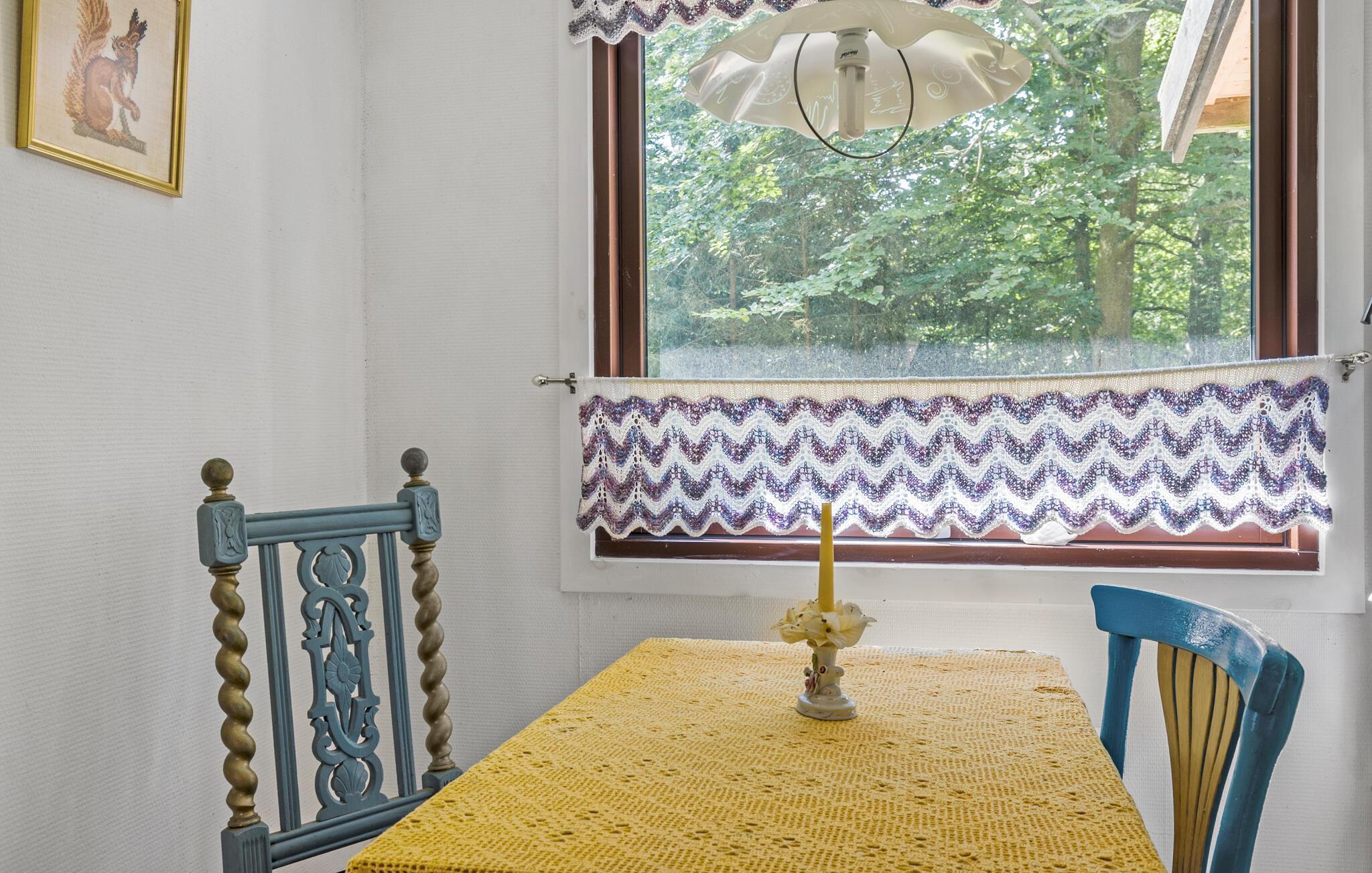 Eingebettet in ein schönes Naturgebiet und ländliche Idylle, bietet Ihnen Ihr gemütliches Holzhaus die ideale Kulisse, um dem Alltag zu entfliehen und sich in der ruhigen Umgebung zu entspannen. Freuen Sie sich auf die nostalgische Inneneinrichtung Ihres Ferienhauses, die eine warme und einladende Atmosphäre schafft. Genießen Sie morgens die erste Tasse Kaffee des Tages, während Sie den Blick durch die großen Fenster in den grünen Garten genießen. Der Wohnbereich mit Kaminofen sorgt für gemütliche Abende.