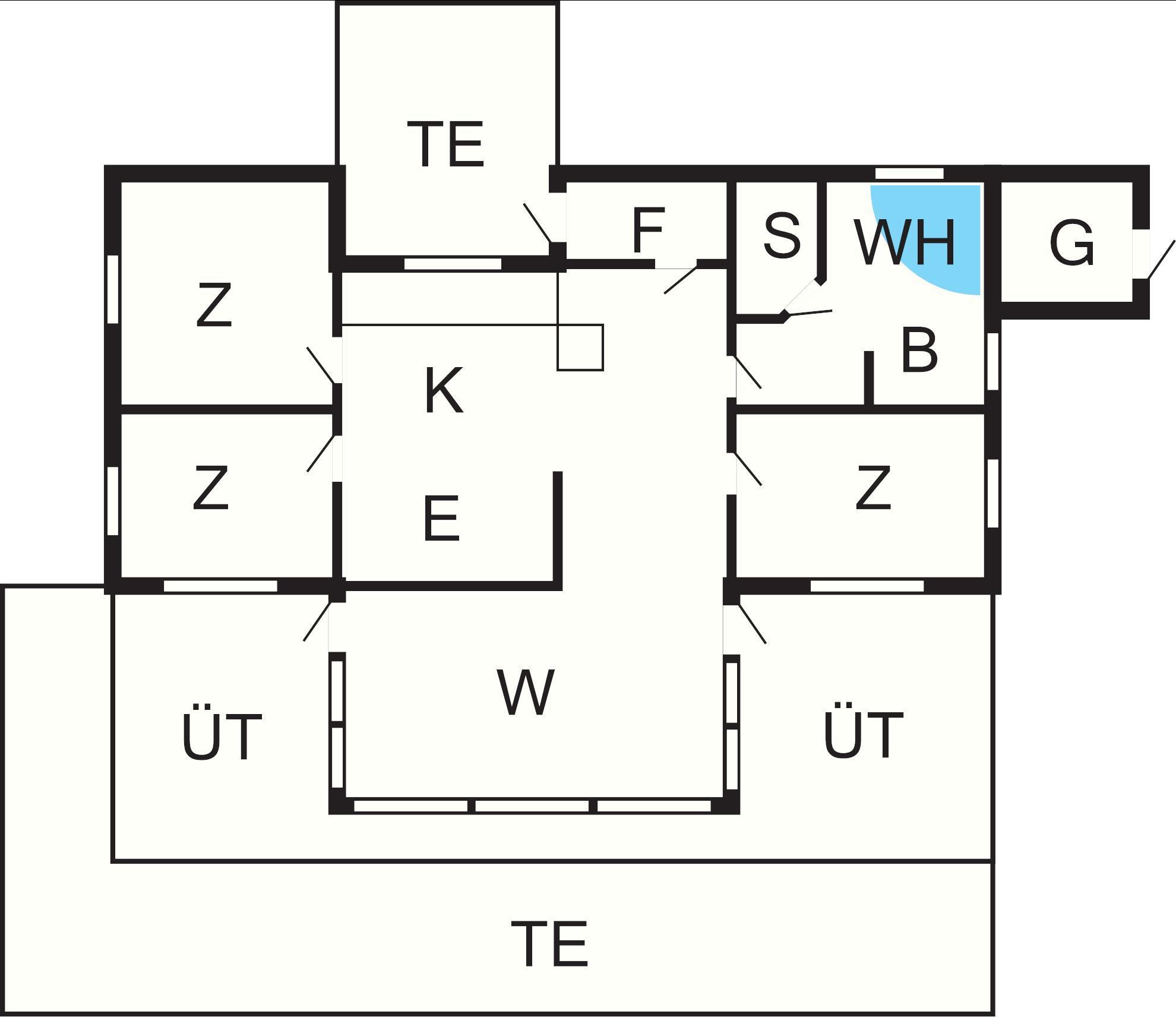 Bad: WC, Waschb., Dusche, Fußbodenheiz.