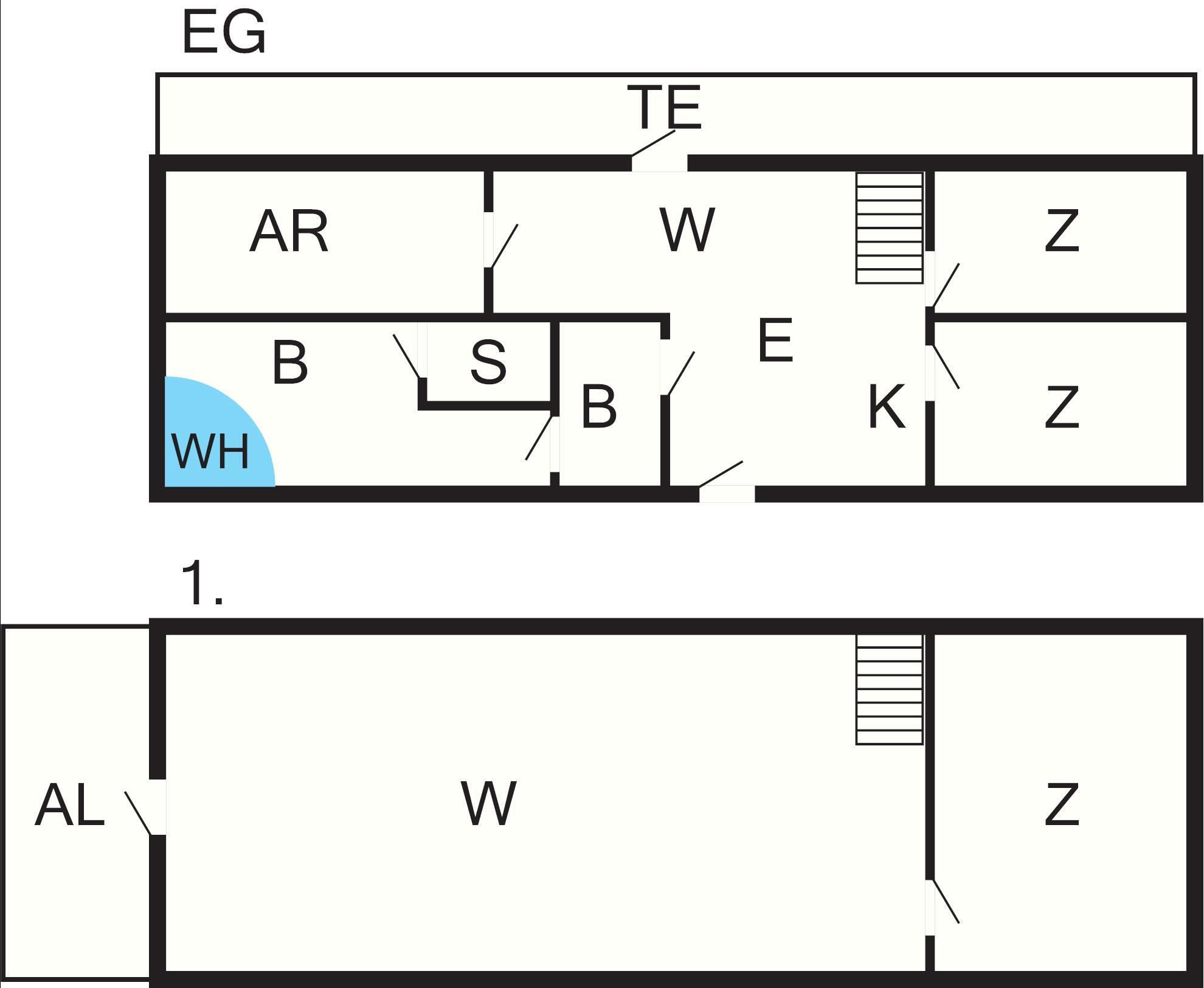 Bad: WC, Waschb., Dusche