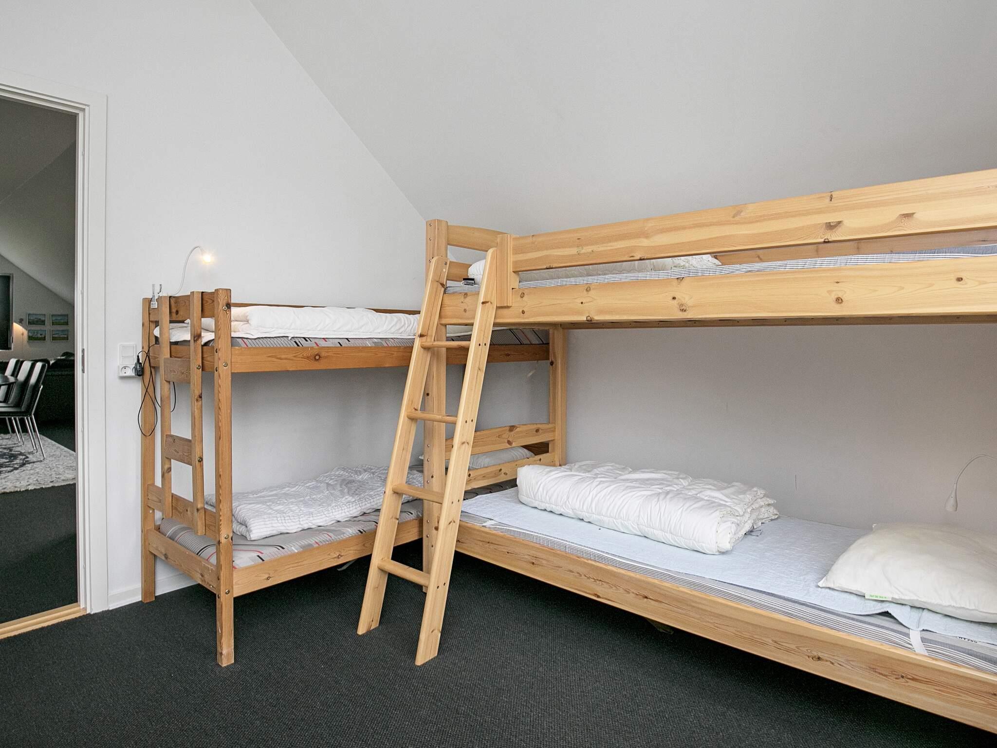 Oben in der ersten Etage befindet sich das große Wohnzimmer und das Hauptschlafzimmer mit vier Schlafplätzen, verteilt auf ein Doppelbett und ein Etagenbetten. Vom Wohnzimmer aus haben Sie Zugang zum großen Balkon. Auch im Außenbereich stehen bequeme Sitzgelegenheiten für Sie bereit.