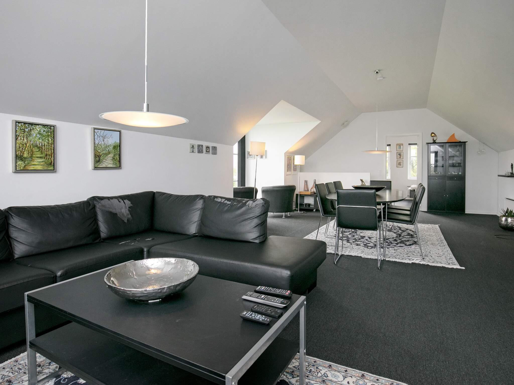Ferienhaus in erhöhter Lage, mit schöner Aussicht in die reizvolle Landschaft am Limfjord, sowohl von der Terrasse als auch oben vom Balkon des Hauses in der ersten Etage. Für die Erholung stehen in einem der beiden Bäder Whirlpool und Sauna bereit.