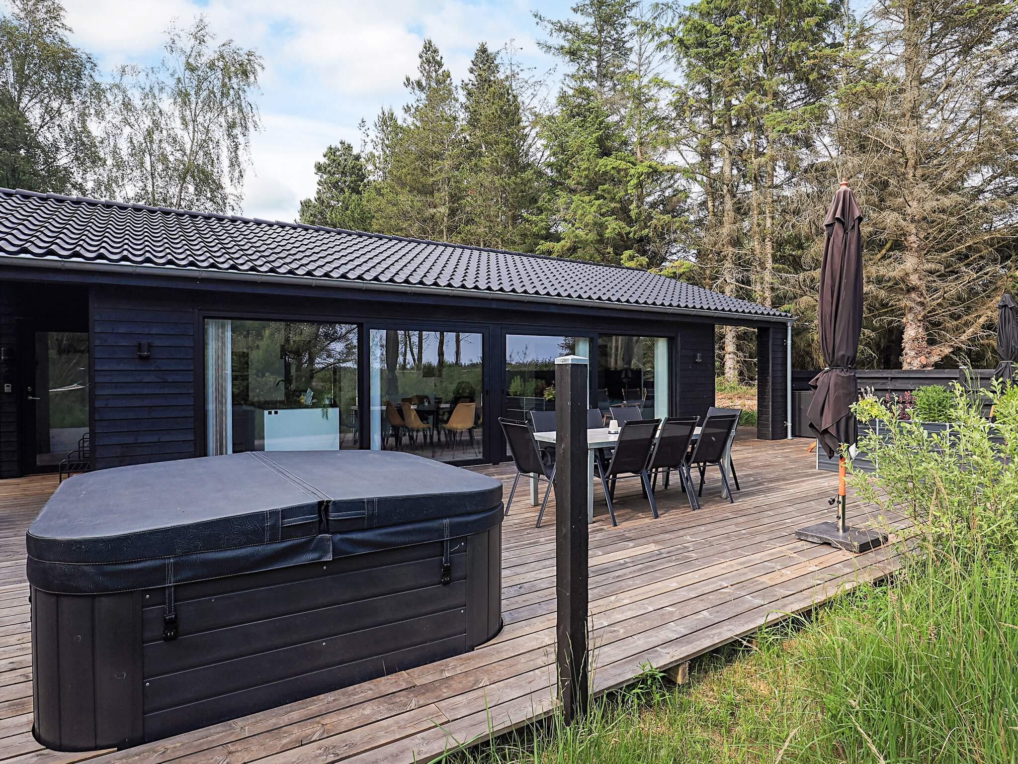 Modernes Ferienhaus mit Außenwhirlpool in herrlicher Lage am Ortsrand von Bunken am Ende einer Sackgasse, in einem ruhigen, grünen und naturreichen Ferienhausgebiet.