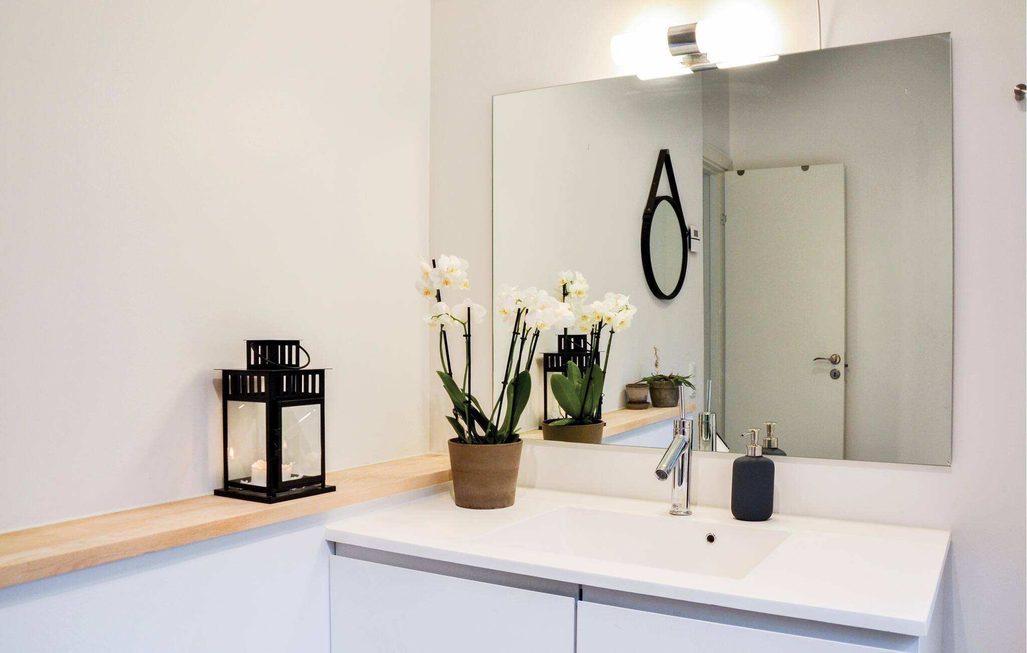 Das Herz des Hauses ist das schöne Wohnzimmer mit heller und moderner Einrichtung und die offene Wohnküche, die gut ausgestattet ist. Hier können Sie sich zu den Mahlzeiten versammeln. Das Schlafzimmer 1 ist ein Durchgangszimmer.