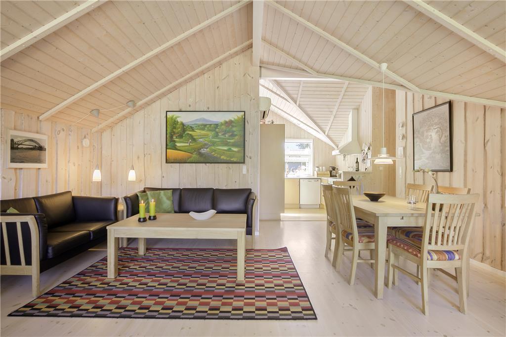 Das geschmackvolle Ferienhaus empfängt Sie mit einem offen und harmonisch kombinierten Küchen- und Wohnbereich. Die helle Küche beinhaltet unter anderem einen Ceranfeldherd, einen Geschirrspüler, eine Mikrowelle und einen Kühlschrank mit Gefriermöglichkeit. Der attraktive Wohnbereich lädt mit seinem Ausgang auf die Terrasse, dem Kamin, den Sofas, dem ansprechenden Essplatz und Fernsehen (Smart-TV mit zugang zum Streaming-Diensten (erfordert separate Anmeldung) zu gemütlichen Stunden im Kreise Ihrer Lieben ein. Im Hauswirtschaftsbereich stehen eine Waschmaschine und ein Wäschetrockner bereit. Das schöne Badezimmer ist mit Fliesenboden inklusive Fußbodenheizung und einer Duschnische ausgestattet. Die Schlafplätze verteilen sich auf insgesamt drei Schlafräume, ein mit einem Doppelbett, und ein mit einem dobbelten Schlafsofa. Im dritten Schlafraum befindet sich ein Einzelbett. Das attraktive Urlaubsdomizil wird durch ein Wärmepumpe, den Kamin und Elektroheizkörper beheizt.