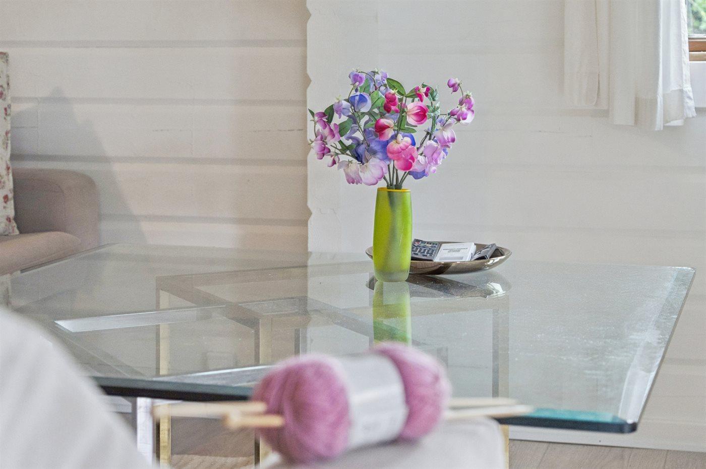 Im Ferienhaus gibt es eine gemütliche Wohnküche mit einer neuen, modernen Küche, und von hier gelangst du auf die südlich ausgerichtete Terrasse, die teilweise überdacht ist.