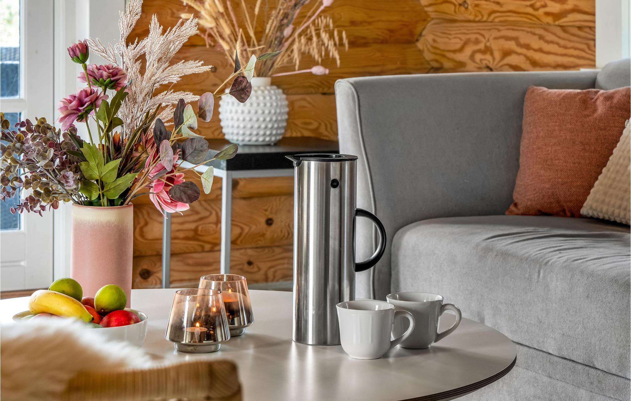 Vom Wohnzimmer aus gelangen Sie auf die Terrasse mit Grill und Gartenmöbeln für wunderschöne Stunden an der frischen Luft. Lassen Sie die Kinder sich auf dem großen Naturgrunstück austoben, während Sie eine kalte Erfrischung beim Blick auf die Landschaft und das Wasser genießen.