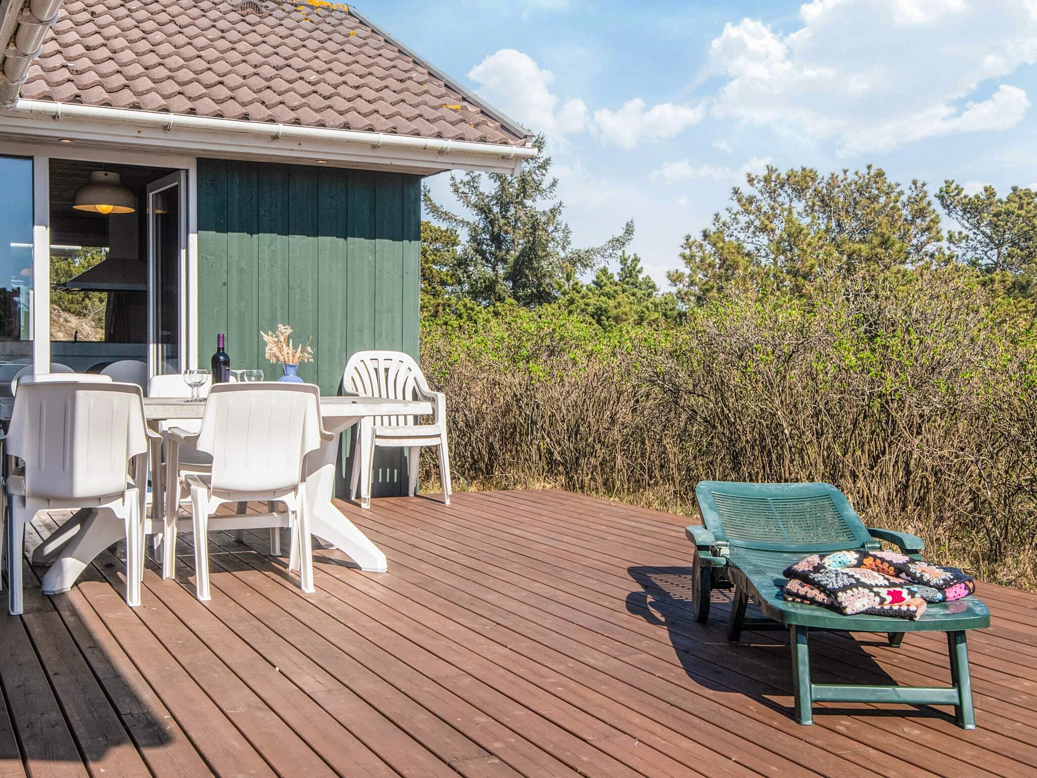 Wechseltag Freitag - Das 1.800m2 große Naturgrundstück dieses Ferienhauses ist einfach fantastisch. Von der großen Düne neben dem Haus hat man einen großartigen Ausblick, bis zur Nordseeküste am Horizonnt. Im Ferienhaus gibt es einen offenen Küchen-/Wohnbereich für das Familienleben, mit Ess- und Sitzecke sowie gemütlichem Holzofen für kühlere Abende. Zudem windgeschützte, verglaste Veranda am Haus mit Zugang weiter zur großen, neuen Ostterrasse des Hauses. Außerdem stehen ein Badezimmer mit Dusche/WC sowie drei Schlafzimmer zur Verfügung: eines mit Doppelbett, das zweite mit zwei Einzelbetten und das dritte mit einem Etagenbett. Im Nebengebäude befindet sich eine Waschmaschine. Sie wohne hier in einer landschaftlich reizvollen, ruhigen Umgebung mit einer kleinen Stichstraße ohne Durchgangsverkehr.