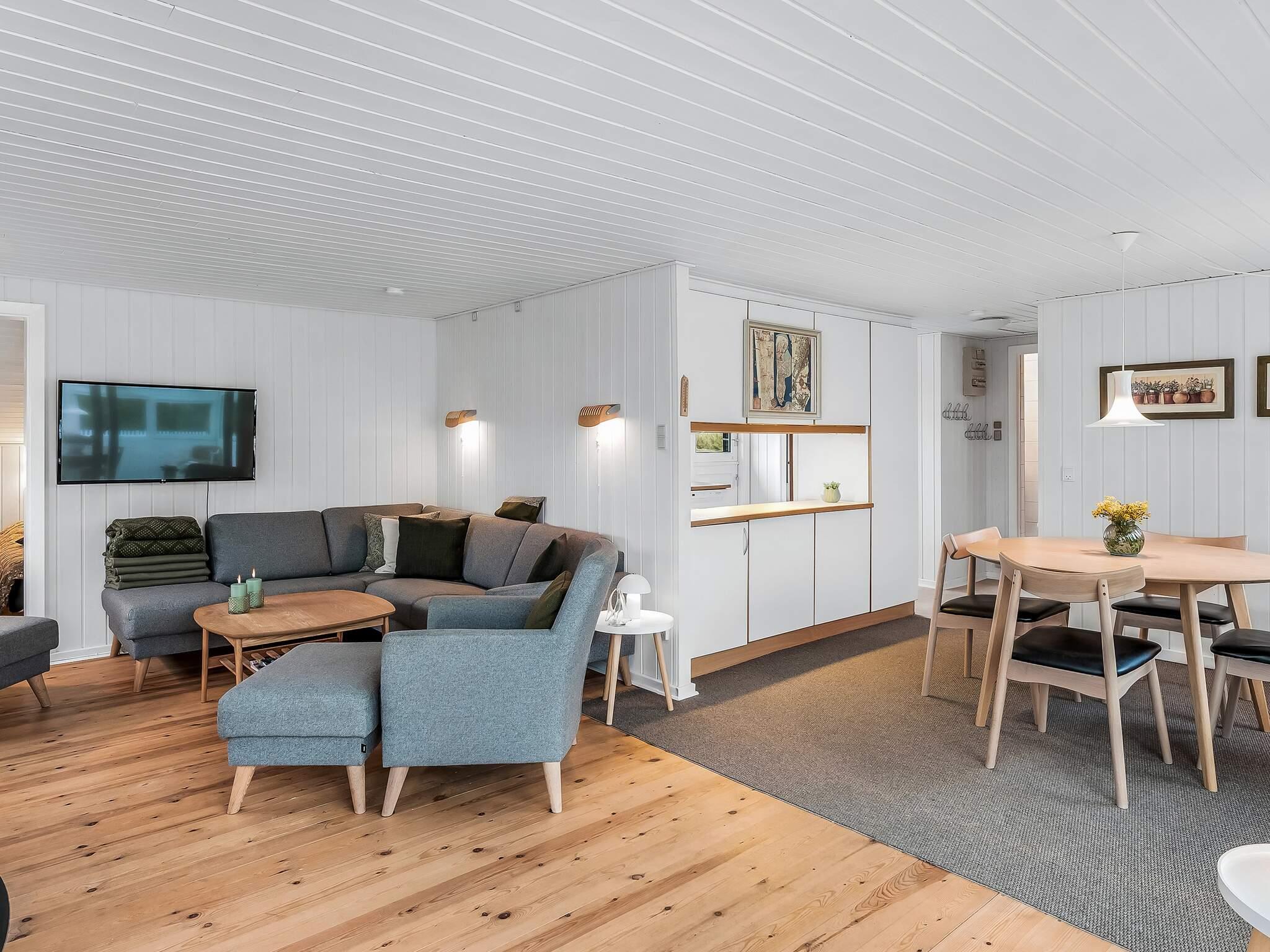 Neues Haus in unserem Programm ab Frühjahr 2023. - MAX 1 KLEINER HUND! Traumhaft gelegenes kleines gemütliches Ferienhaus. In der Nähe des Strandes und der Einkaufsmöglichkeiten und Restaurants. Schöne Anlage mit vielen gemütlichen Ecken. Hier können Sie sitzen und das Rauschen des Meeres genießen. Das Ferienhaus ist mit einem geräumigen Wohnzimmer mit Essbereich und einer Sofaecke am Holzofen ausgestattet. Vom Wohnzimmer aus treten Sie in den schönsten Wintergarten, der ganzjährig genutzt wird. Hier fühlt man sich wie draußen. Gemütliche Küche mit allem was man braucht. Badezimmer mit Fußbodenheizung. 1 Schlafzimmer mit Doppelbett. 1 Schlafzimmer mit Etagenbett 70x180. 1 Schlafzimmer mit Einzelbett. Wirklich erstklassige Lage. Annesk ist Privat. Kostenlose Endreinigung.