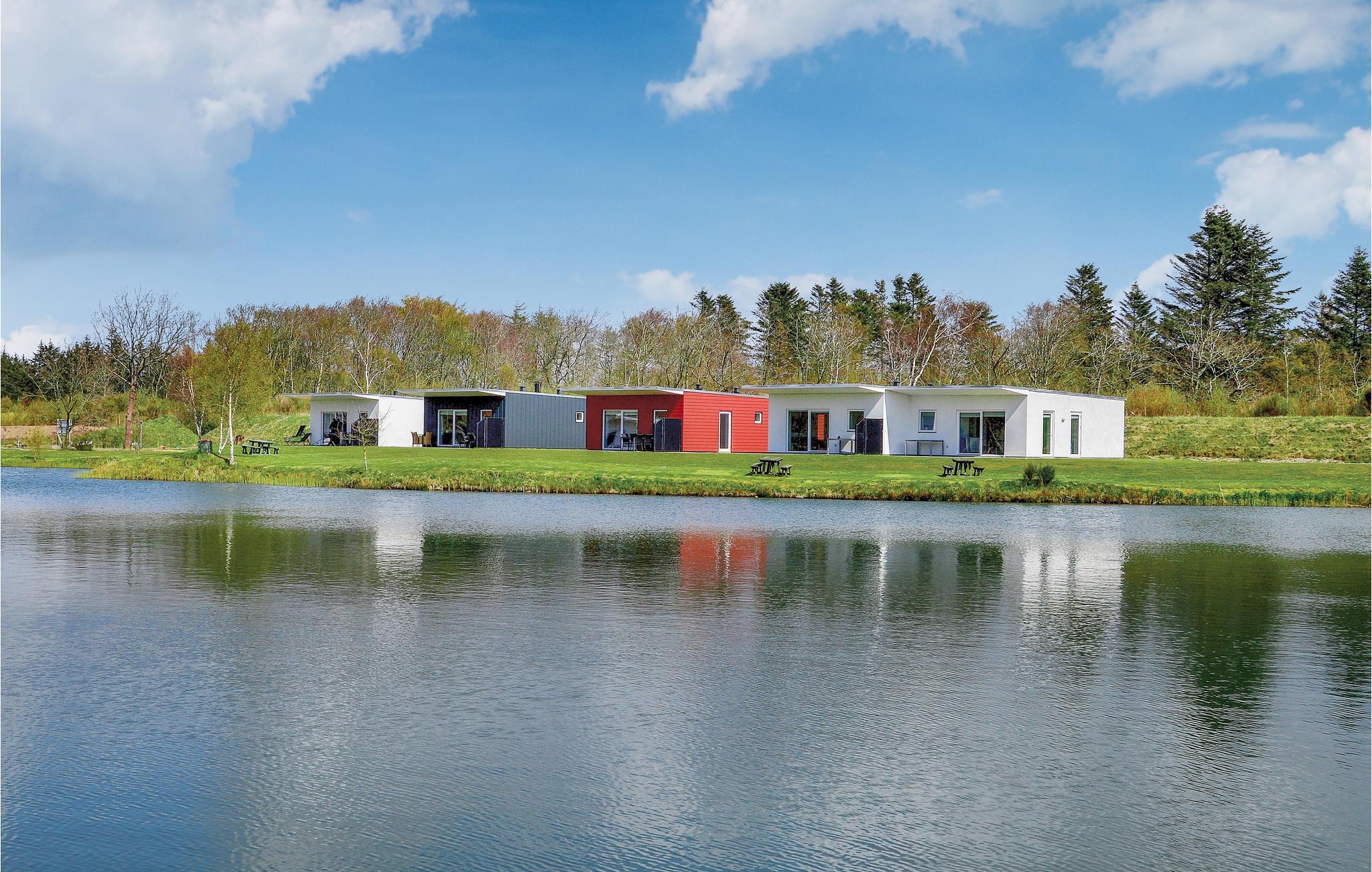 Dieses gemütliche Ferienhaus befindet sich im Naturpark Vest in Hee mit Blick auf den Fischteich, der direkt vor der Terrasse liegt.