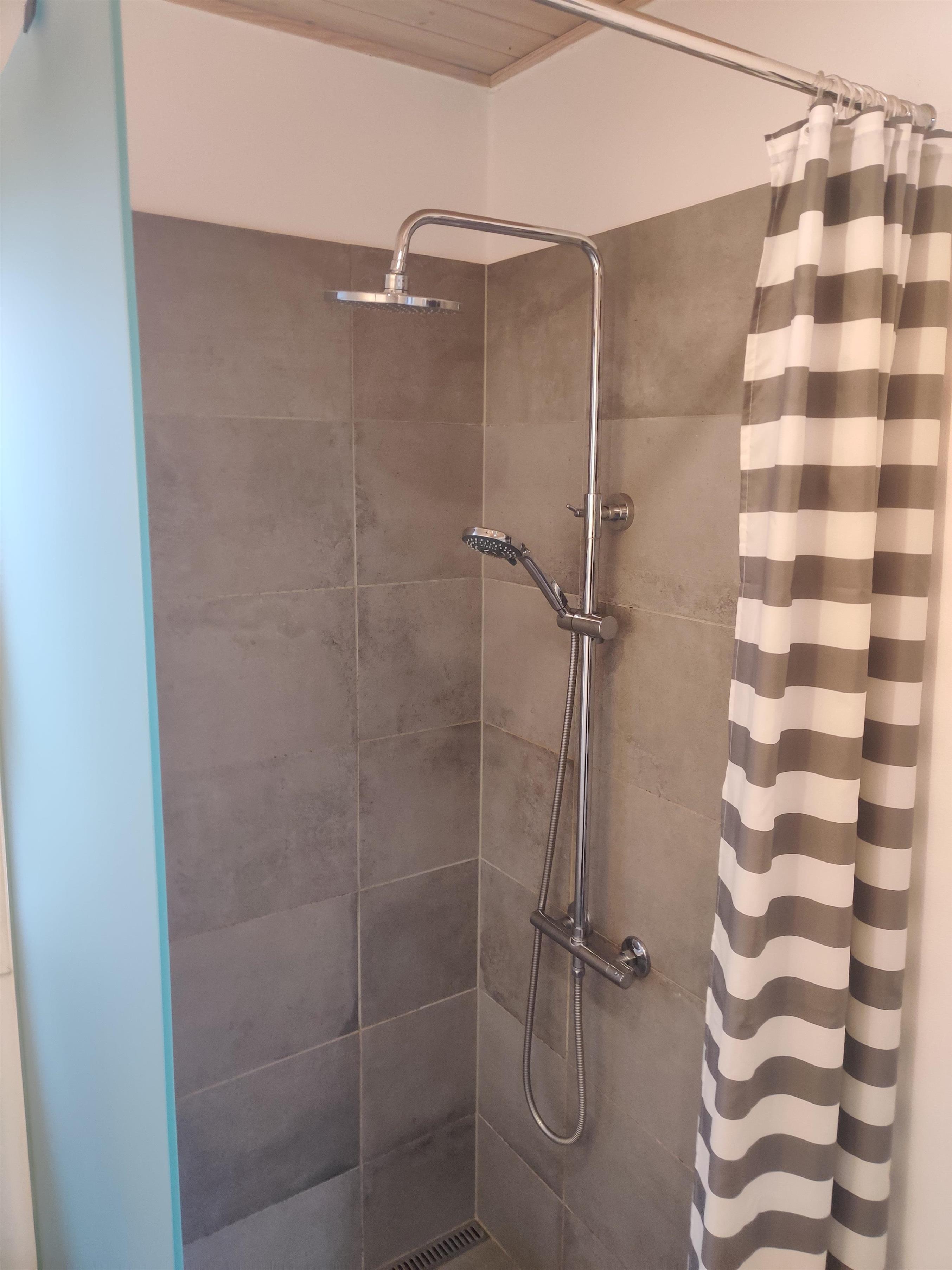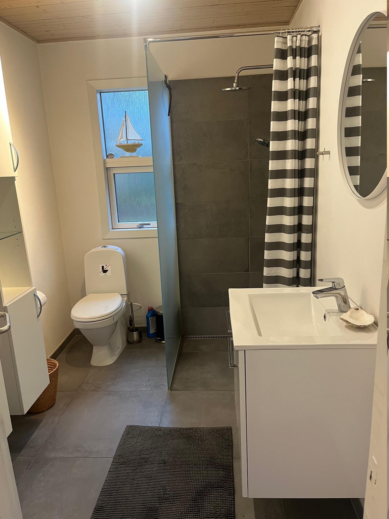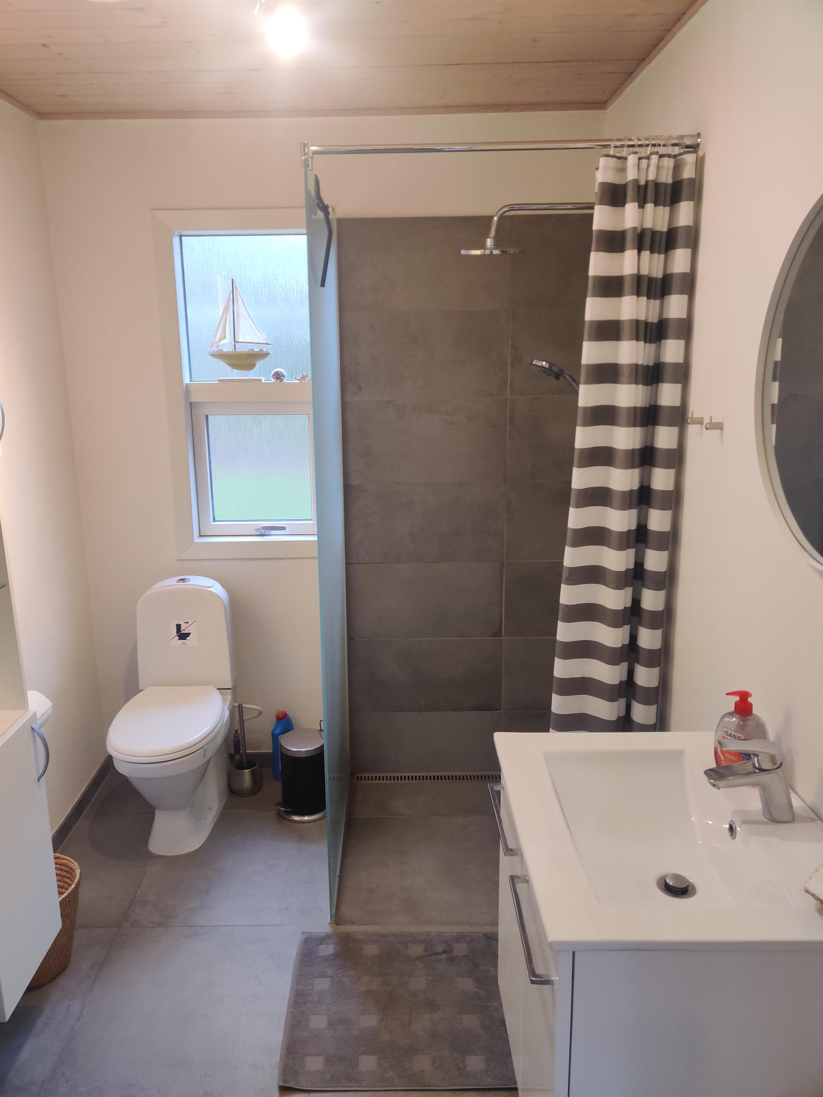 Das Badezimmer ist modern und verfügt über eine Dusche sowie Fußbodenheizung. Das Haus hat eine Waschmaschine, die sich im Hauswirtschaftsraum befindet.