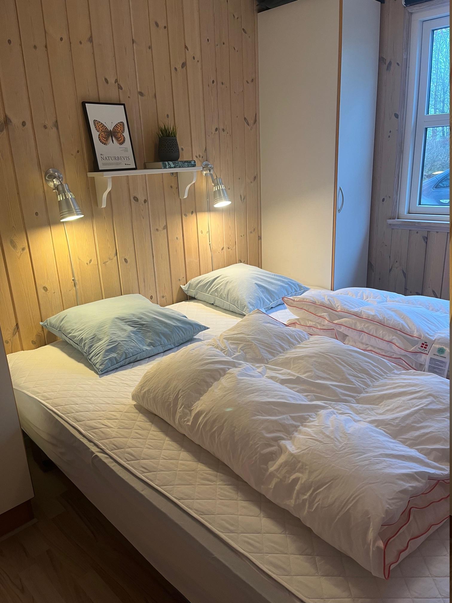 Das Ferienhaus hat 3 Schlafzimmer. Zwei der Zimmer sind mit Doppelbetten eingerichtet und im dritten Zimmer stehen zwei Einzelbetten. Es gibt auch ein Kinderbett.