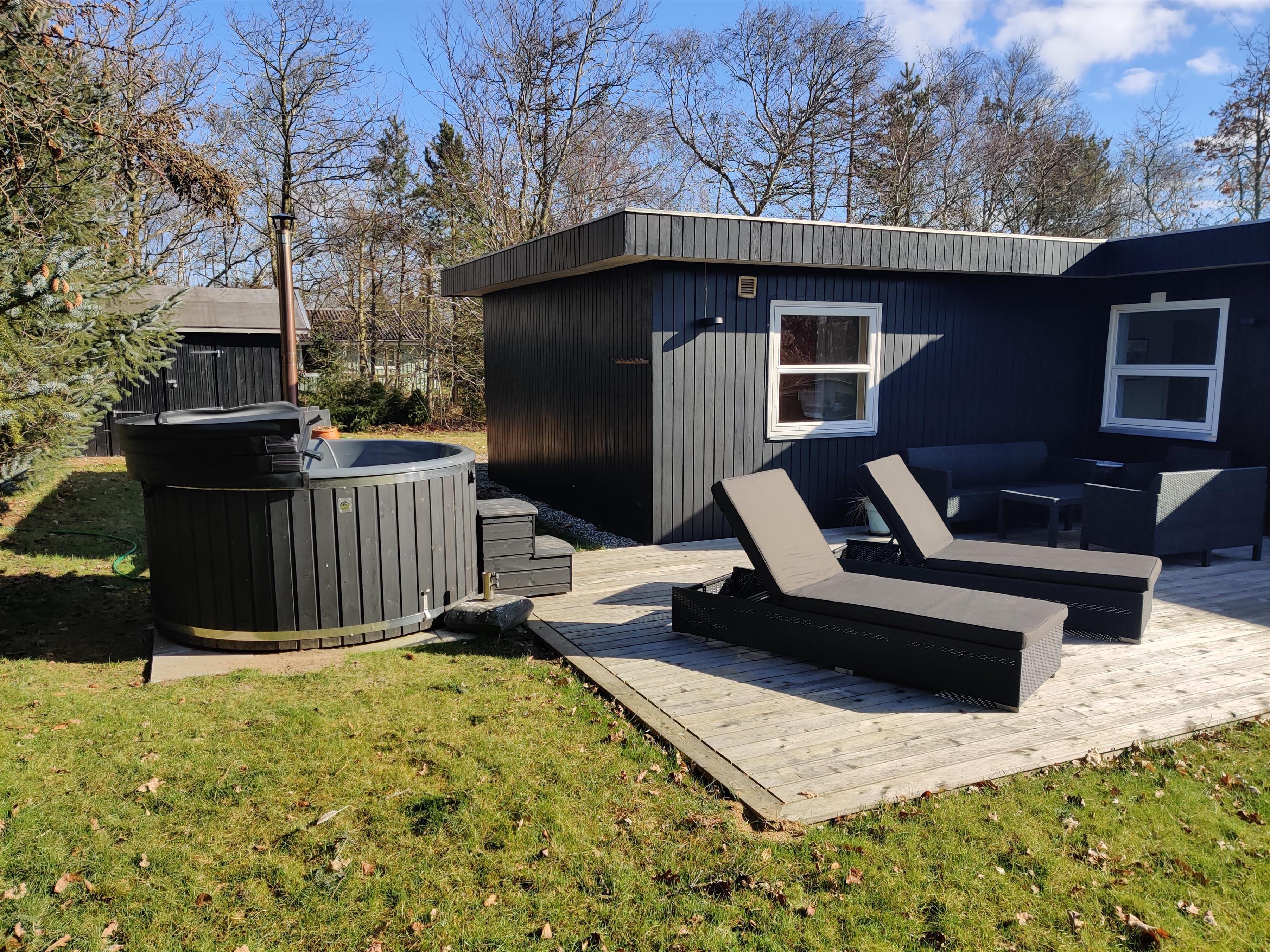 Dieses komplett renovierte (2024) Ferienhaus befindet sich auf einem schönen, großen Waldgrundstück. Es gibt sowohl eine überdachte als auch eine offene Terrasse mit einem herrlichen Whirlpool sowie Gartenmöbel, einen Grill und Liegestühle. Für die Kinder gibt es eine Schaukel und eine Sandkiste.