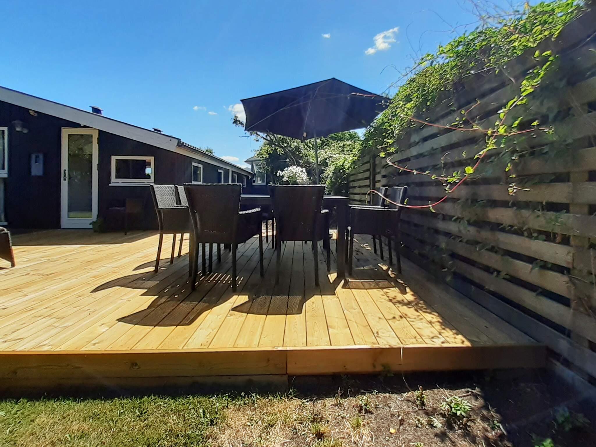 Neuere, angelegte Terrassenfläche an der Rückseite des Hauses mit Sonne von Mittag bis Abend, ideal für Ruhe und Privatsphäre und für entspannte Stunden mit der Familie. Mit seiner küstennahe Lage ist dieses Haus ideal für Familien mit Kleinkindern, denn der Weg zum nächsten Strandufer ist kurz.
