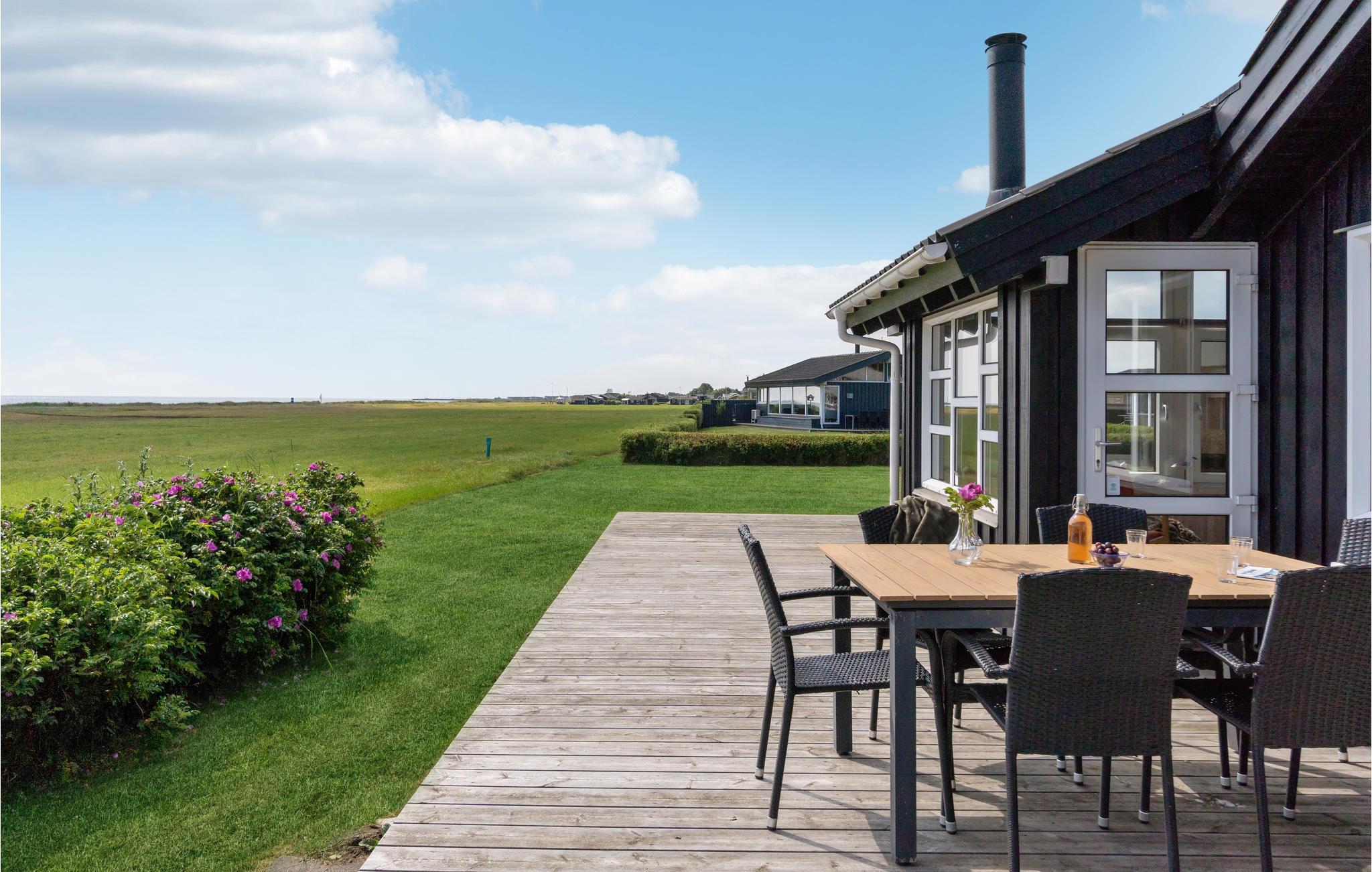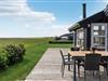 Gemütliches Ferienhaus mit Meerblick, Kaminofen und Terrasse nahe Sæby Strand, ideal für erholsame Urlaubstage.