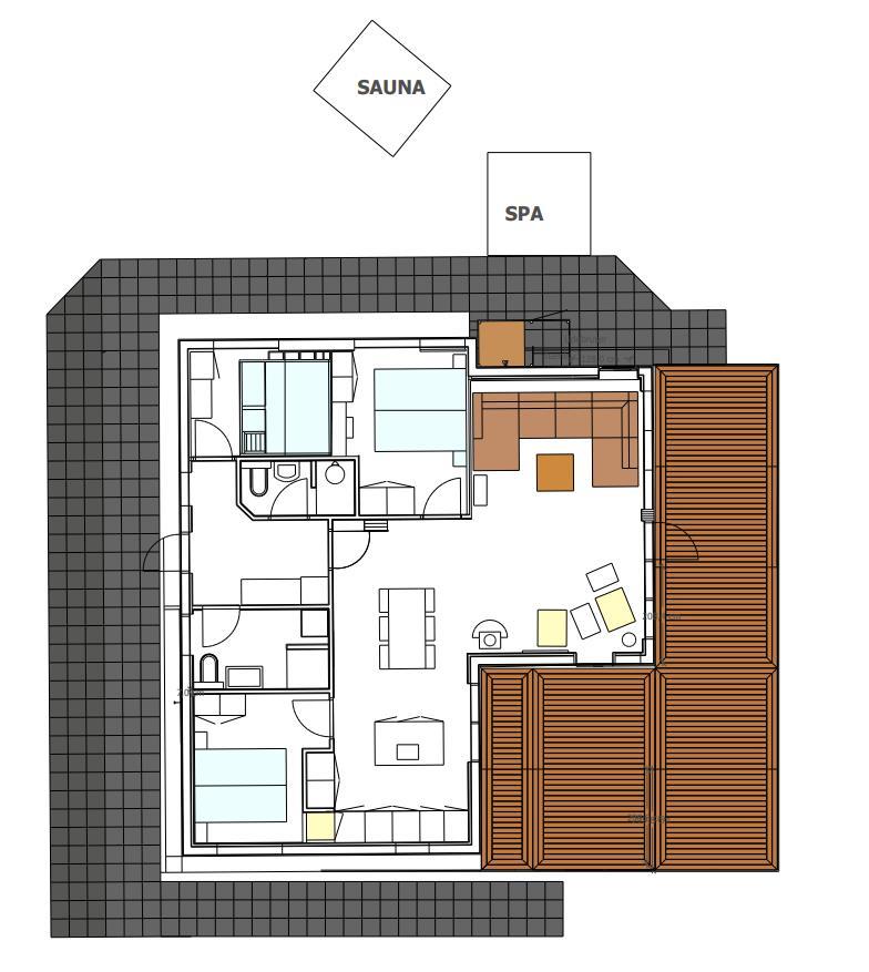 Es gibt drei Schlafzimmer, die mit häuslicher Gemütlichkeit eingerichtet sind. Zwei von ihnen bieten komfortable Doppelbetten, während das dritte Zimmer (Familieraum) eine Flexibilität bietet. In diesem Raum befindet sich eine maßgefertigte Schlafanordnung, die ein Doppelbett und ein Etagenbett für 2 Personen umfasst. Abenteuerlustige Kinder können sich auf einen magischen Schlafboden freuen, der als gemütliche Höhle ganz oben im selben Raum fungieren kann (es kann auch als 2 ekstra betten für kleinen kinden fungieren)