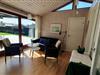 Vom Wohnzimmer aus gibt es einen Zugang zu einer schönen überdachten, nach Süden gerichteten Terrasse, die Schutz bietet und die Privatsphäre vor den Nachbarn wahrt, sodass man hier einen gemütlichen Essbereich und eine Sonnenoase hat.