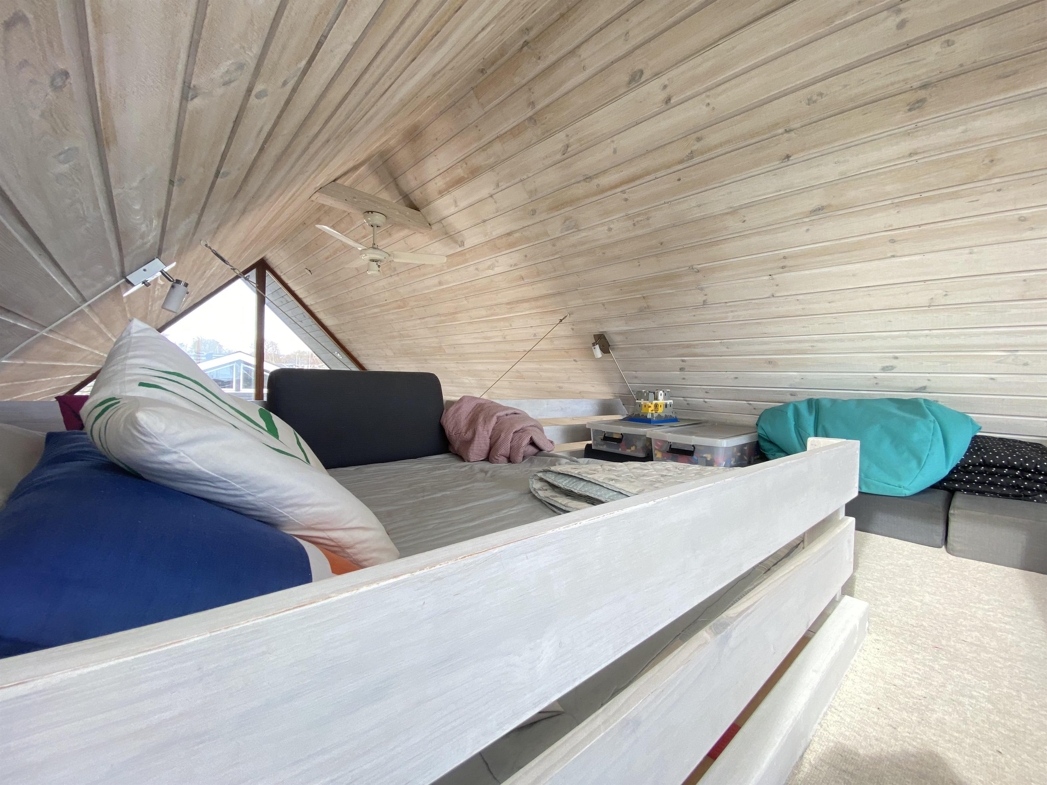 Vom Wohnzimmer aus gibt es Zugang zu einem Hängeboden, auf dem die Kinder ungestört spielen können.