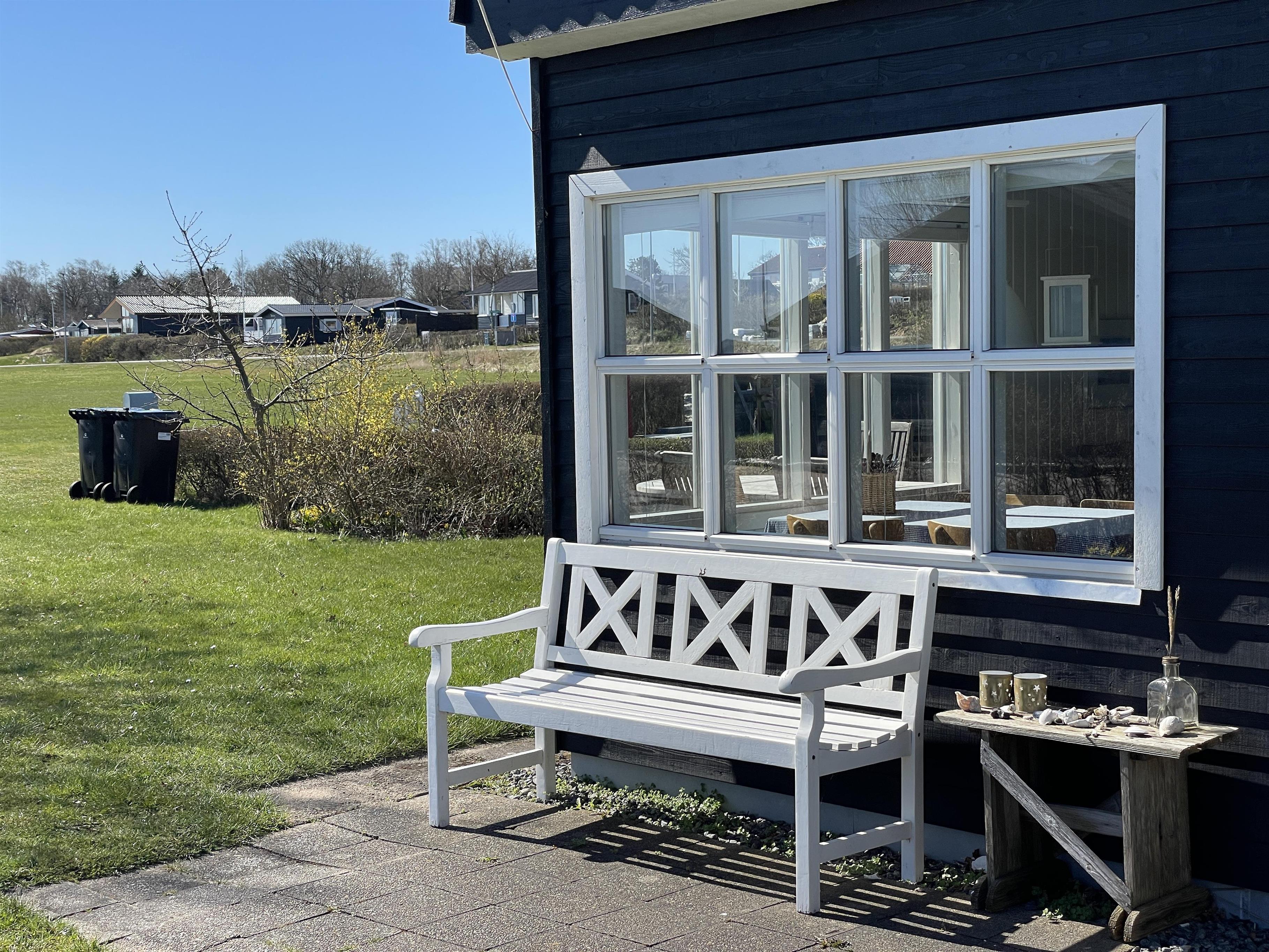 Das Wohnzimmer des Hauses wurde stilvoll renoviert – mit neuem Boden und neuen Möbeln. Es strahlt eine wunderbare Gemütlichkeit und einen besonderen Charme aus. Eine Essecke und ein gemütliches Sofa im Erker laden zum Verweilen ein – mit Blick auf das Kattegat, das nur 200 Meter entfernt liegt. Die Natur rund ums Haus sorgt für erholsame Ruhe. Direkt am Haus befindet sich ein herrlicher kleiner Wintergarten.