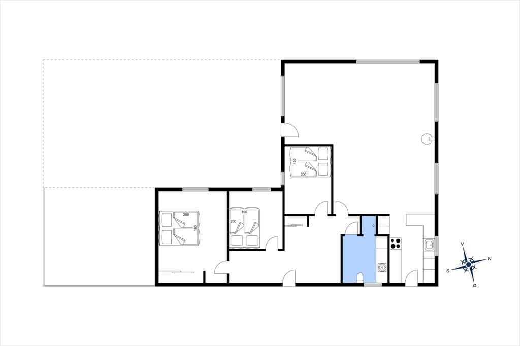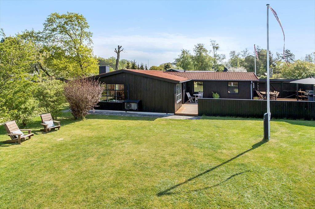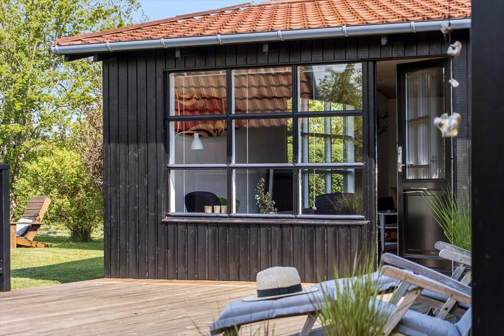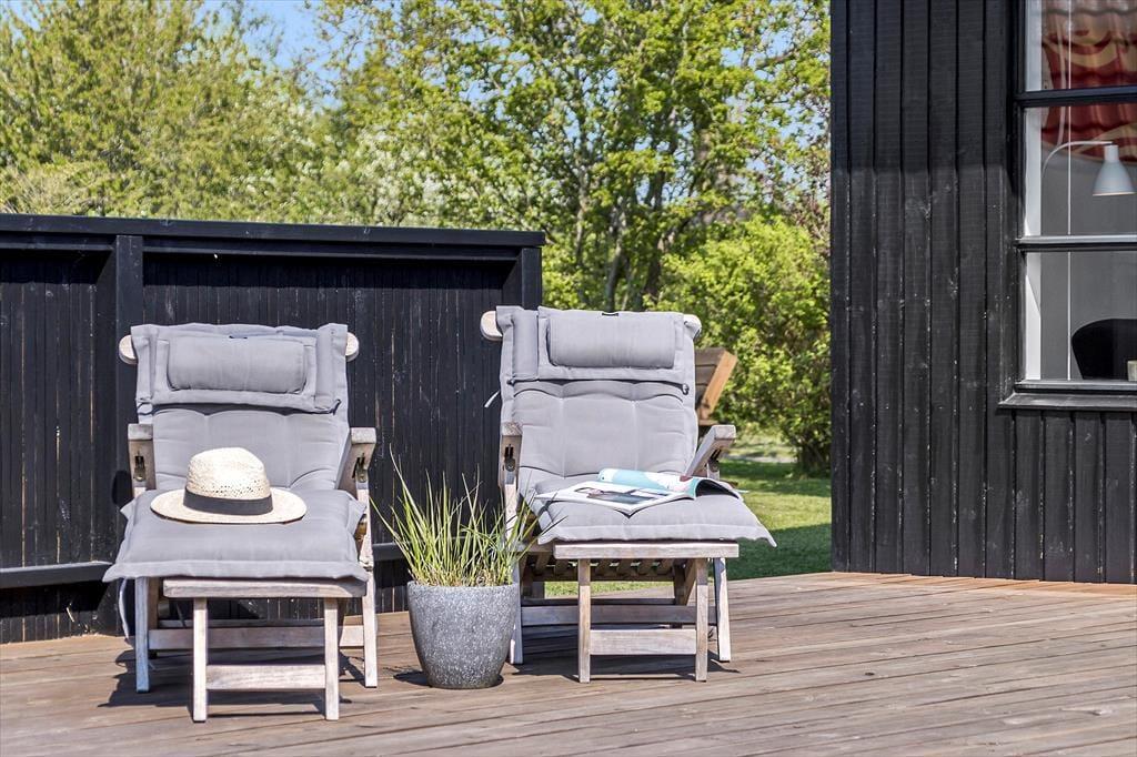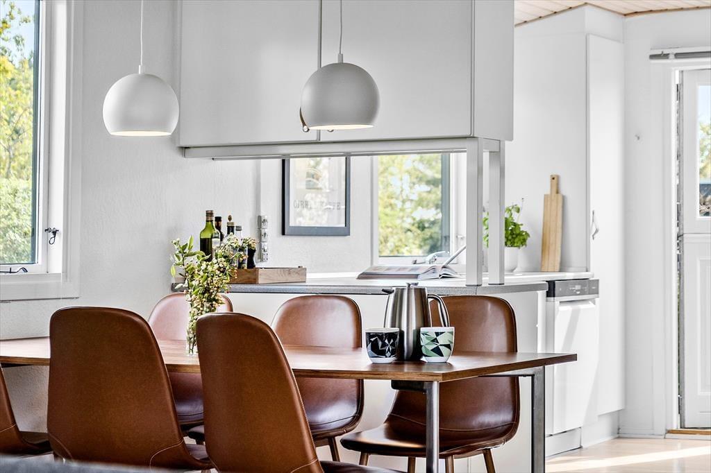 Sobald Sie den großen, hellen Wohnraum betreten, werden Sie die Seele und der Charme dieses Hauses in den Bann ziehen. Sie werden das Gefühl verspüren, dass Sie in diesem Urlaubsdomizil wunderbar aufgehoben sind. Der Kamin sorgt im gemütlichen Wohnraum und in der direkt angrenzenden, offenen Küche für heimelige Wärme und ein Maximum an echter dänischer Ferienhausstimmung. Das Ferienhaus verfügt zudem über eine Wärmepumpe mit Kühlfunktion. In der Küche treffen Sie auf einen Induktionsherd und einen Geschirrspüler. Von hier aus gelangen Sie außerdem hinaus in den Garten an der östlichen Hausseite. Die drei vorhandenen Schlafräume sind allesamt über einen Flur zugänglich und empfangen Sie mit jeweils einem Doppelbett.