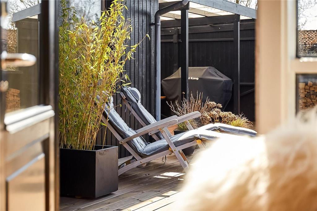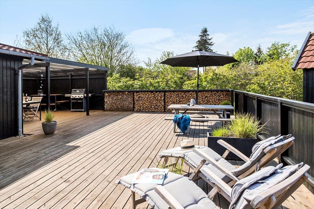 Vom Wohnraum genießen Sie einen direkten Zugang zur großen, neuen und sonnenverwöhnten Terrasse. Dieses Terrasse ist wirklich fantastisch. Obwohl die Terrasse offen ist, sind Sie gut vor Einblicken geschützt und können somit das Leben unter freiem Himmel in vollen Zügen genießen. In den Abendstunden bietet sich der große überdachte Terrassenbereich wunderbar als Rückzugsort an. Dank des offenen und des überdachten Terrassenbereichs können Sie sich völlig unabhängig vom Wetter im Freien aufhalten. Selbst von der Frühlings- oder Herbstsonne wird diese Holzterrasse verwöhnt. Machen Sie es sich also gemütlich, entspannen Sie sich und genießen Sie gesellige Runden im Kreise Ihrer Liebsten mit einem köstlichen Essen vom hauseigenen Gasgrill.