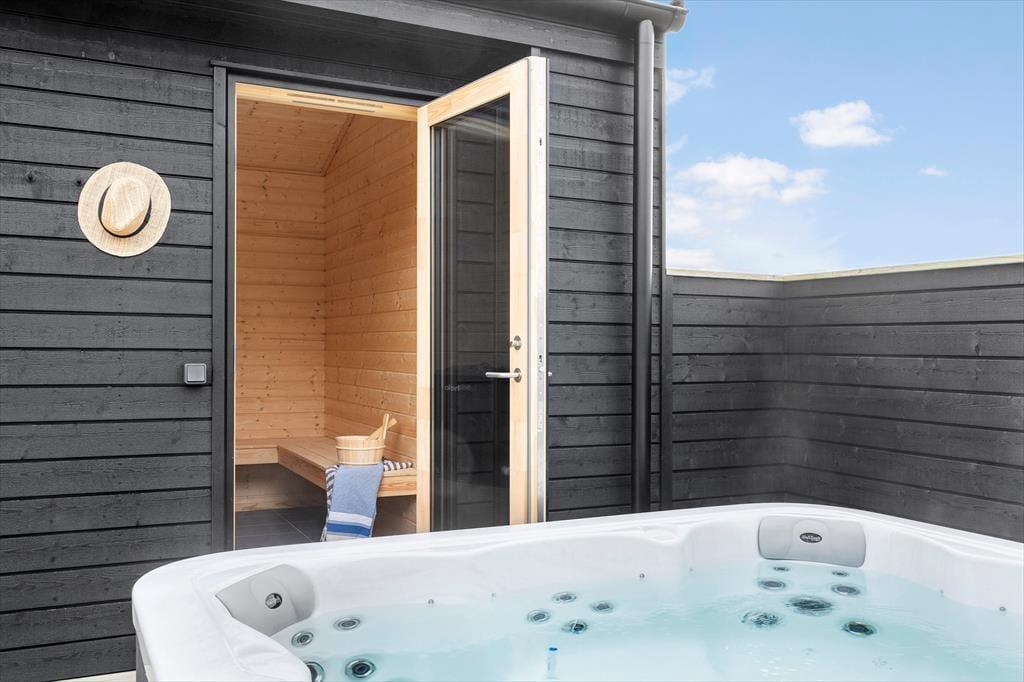 Ein besonderes Highlight ist der Wellnessbereich, der Ihrem Urlaub eine extra Portion Luxus verleiht. Lassen Sie sich im warmen Whirlpool mit Platz für sieben Personen treiben oder genießen Sie die wohltuende Wärme der Sauna nach einem erfrischenden Spaziergang am Strand. Beginnen Sie den Tag mit einer belebenden Außendusche oder entspannen Sie unter dem Sternenhimmel im sprudelnden Wasser – pure Erholung für alle Sinne.