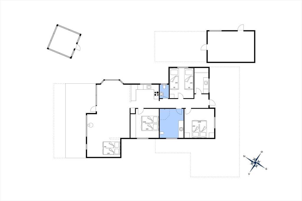 Das Ferienhaus hat eine moderne und skandinavische Einrichtung. Die gemütliche Küche steht in Verbindung mit dem Wohnzimmer, das über einen Kamin verfügt. Das Haus verfügt u.a. über TV (dänische Programme), DVD-Player, Waschmaschine und Geschirrspüler. Schönes Badezimmer und Gästetoilette. Das Haus bietet drei großen und hellen Schlafzimmer. Die zwei Schlafzimmer des Ferienhauses sind mit Doppelbetten ausgestattet und das dritte Schlafzimmer hat zwei Einzelbetten.